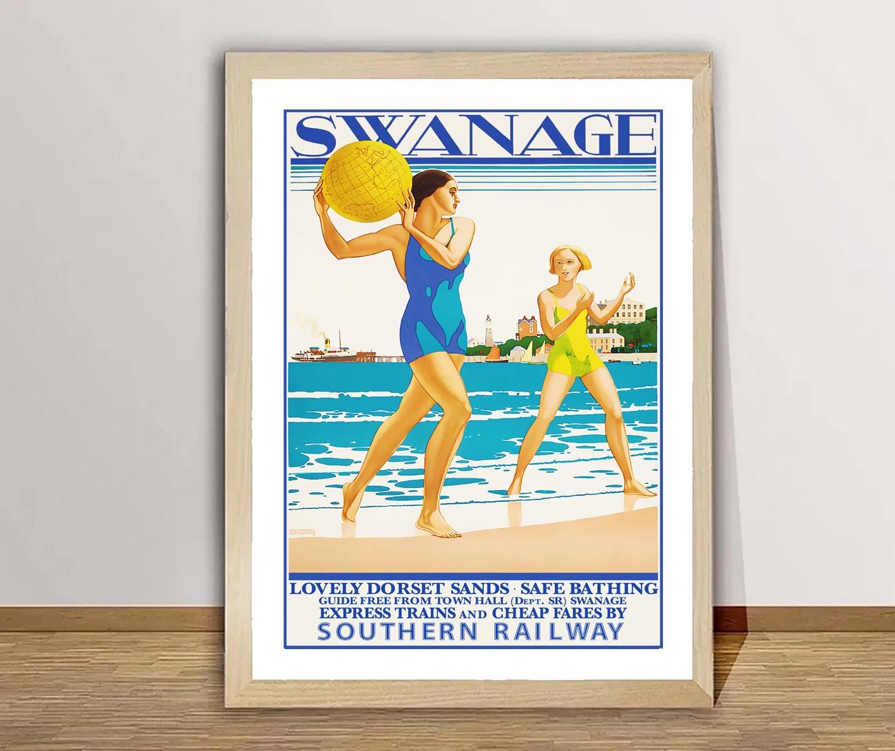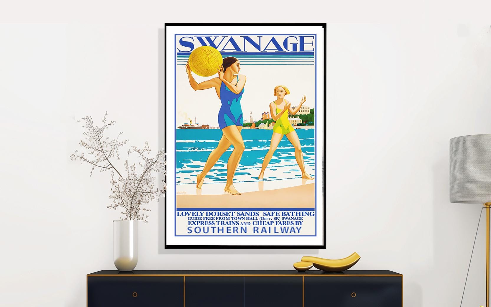 Vintage Swanage Travel Poster: Dorset Beach, England