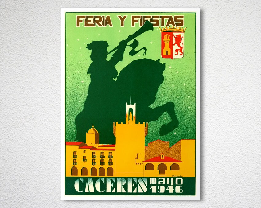 Feria Y Fiestas Caceres Mayo, 1946 Vintage Travel Poster - Poster Print or Canvas Print / Gift Idea / Wall Decor