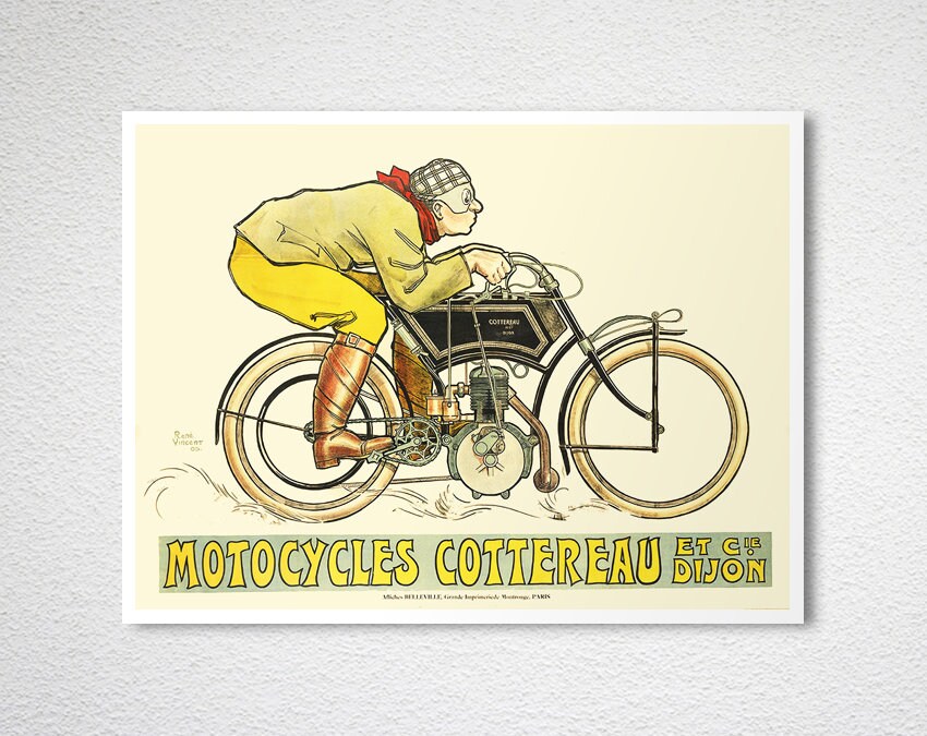 Motocycles Cottereau Vintage Bicycle Poster - Poster Print or Canvas Print / Gift Idea / Wall Decor