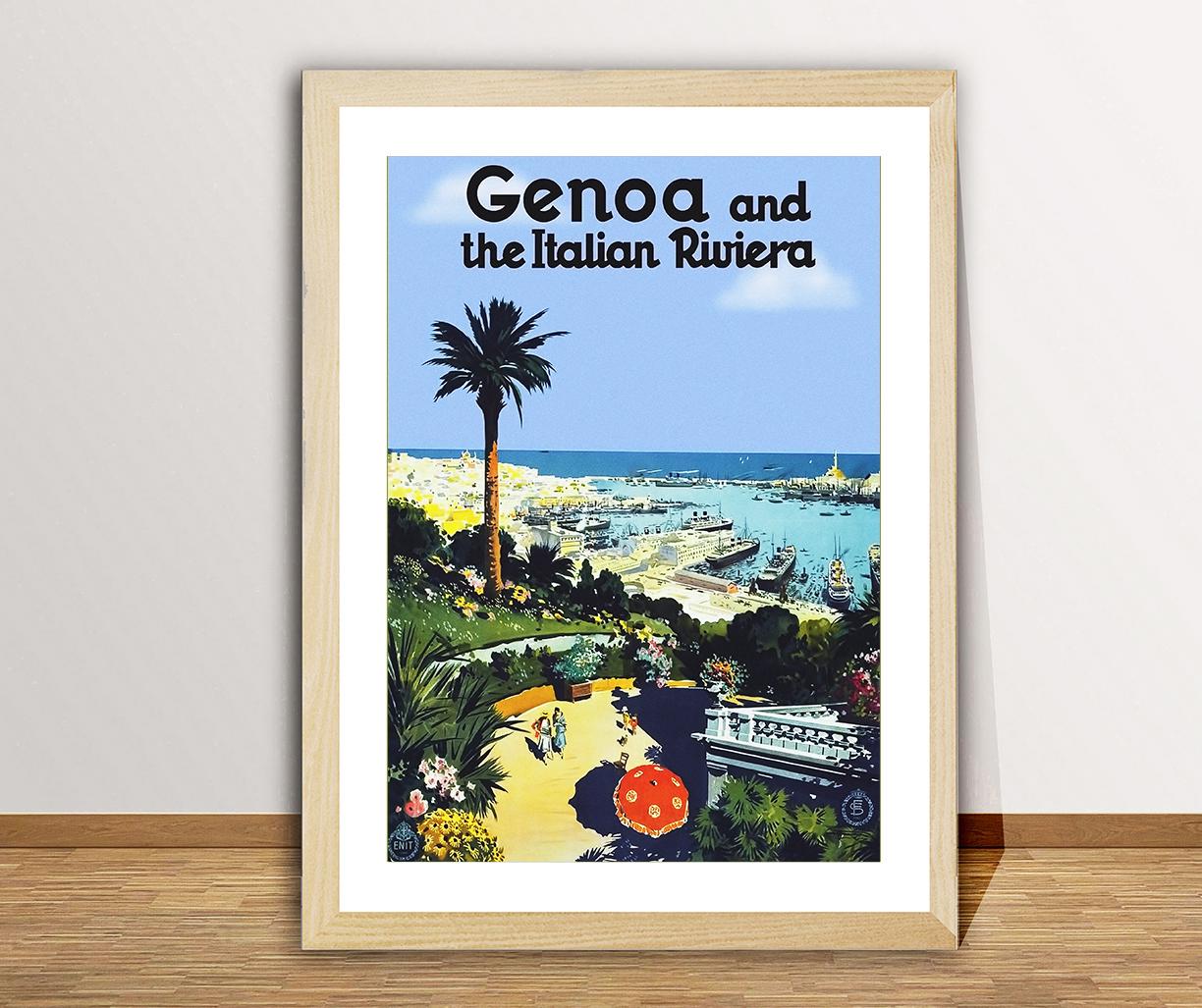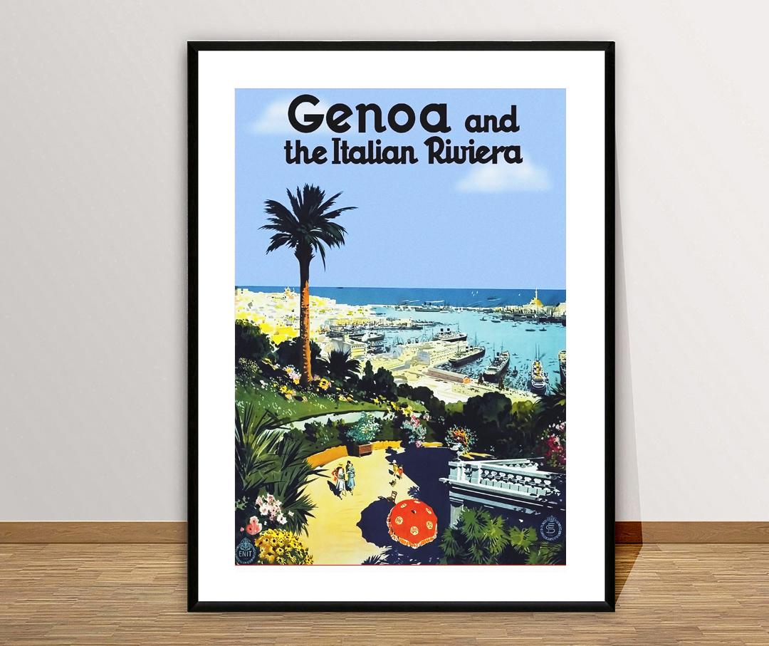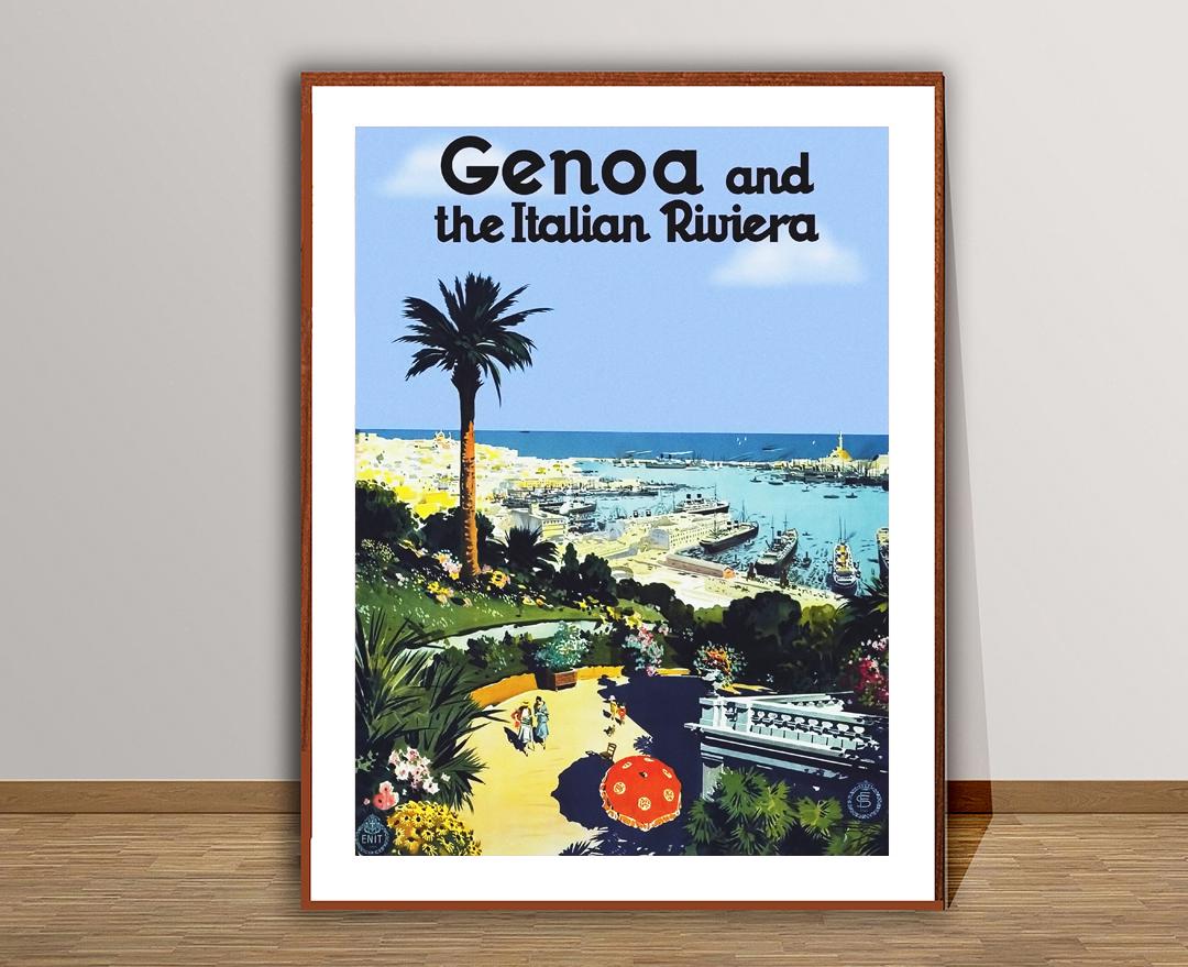 Genoa and the Italian Riviera Vintage Travel Poster - Poster Paper or Canvas Print / Gift Idea