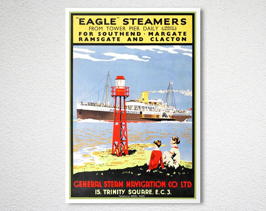 Eagle Steamers Vintage Travel Poster: Southend, Margate, Ramsgate
