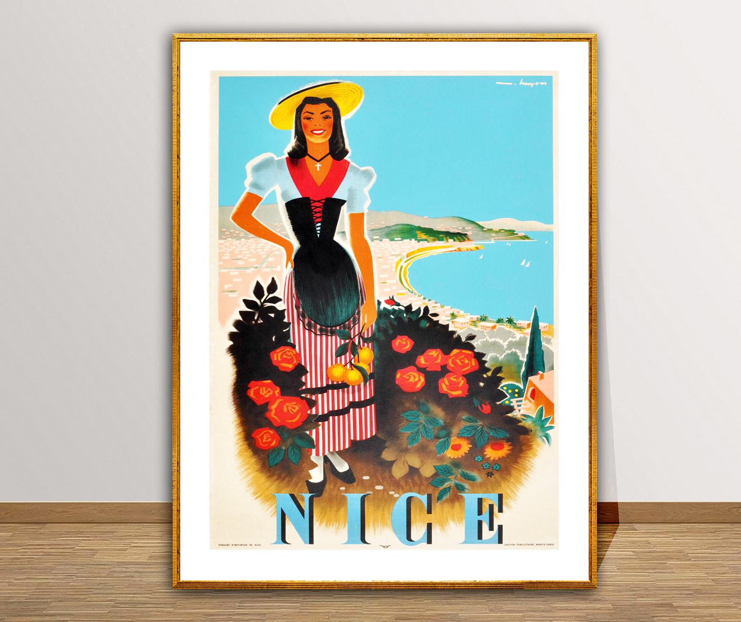 Nice, France Vintage Travel Poster - Poster Paper or Canvas Print