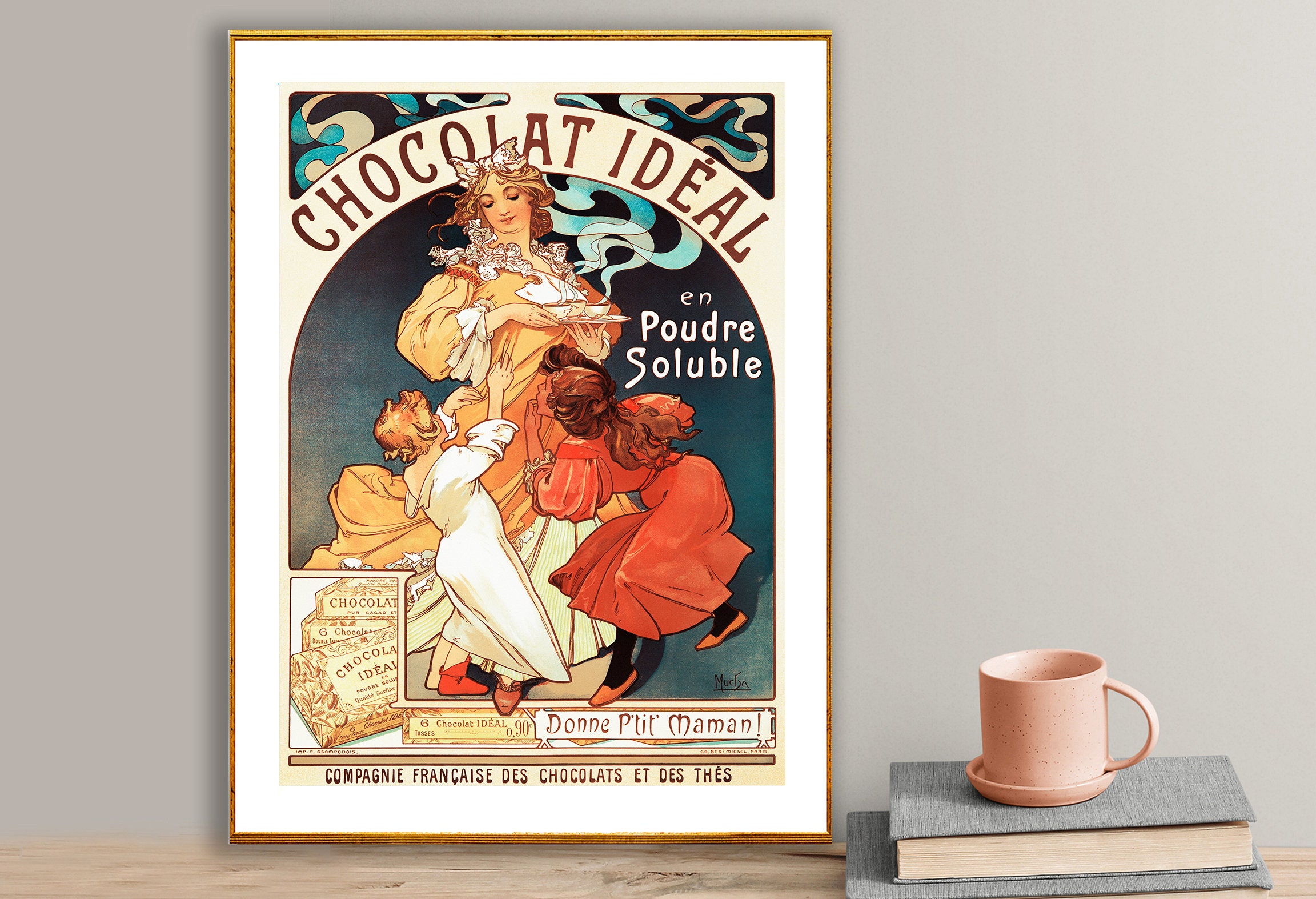 Vintage Chocolat Ideal Advertisement Art Print by Alphonse de Mucha - Reproduction of a Vintage Artwork, Decorative Purposes Wall Decor - Poster Paper or Canvas Print