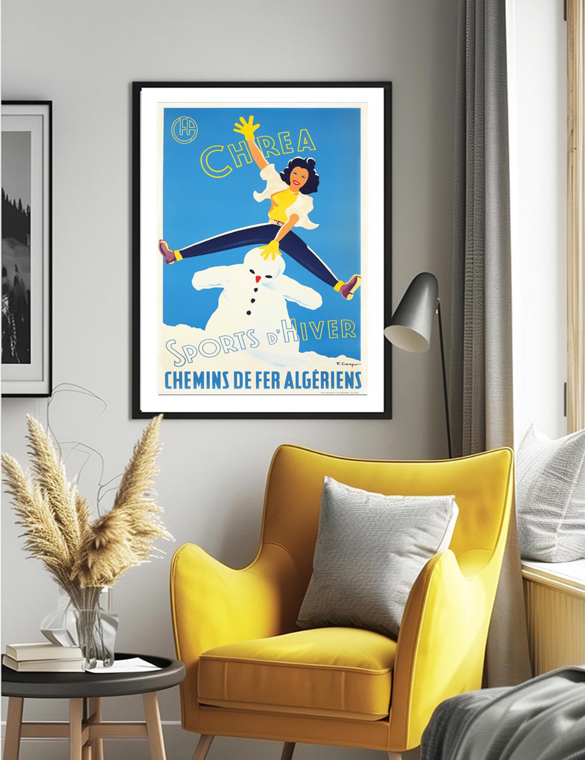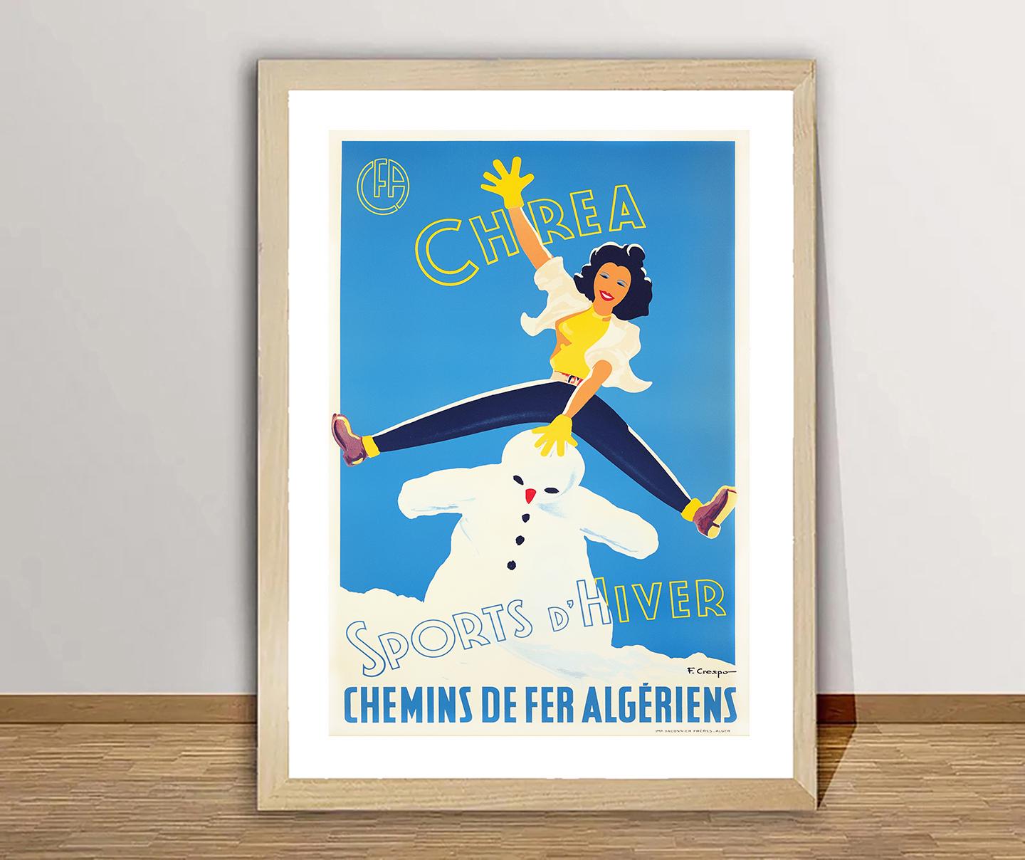 Chrea Sports d'Hiver, Chemins de Fer Algeriens Vintage Ski Poster - Poster Paper or Canvas Print