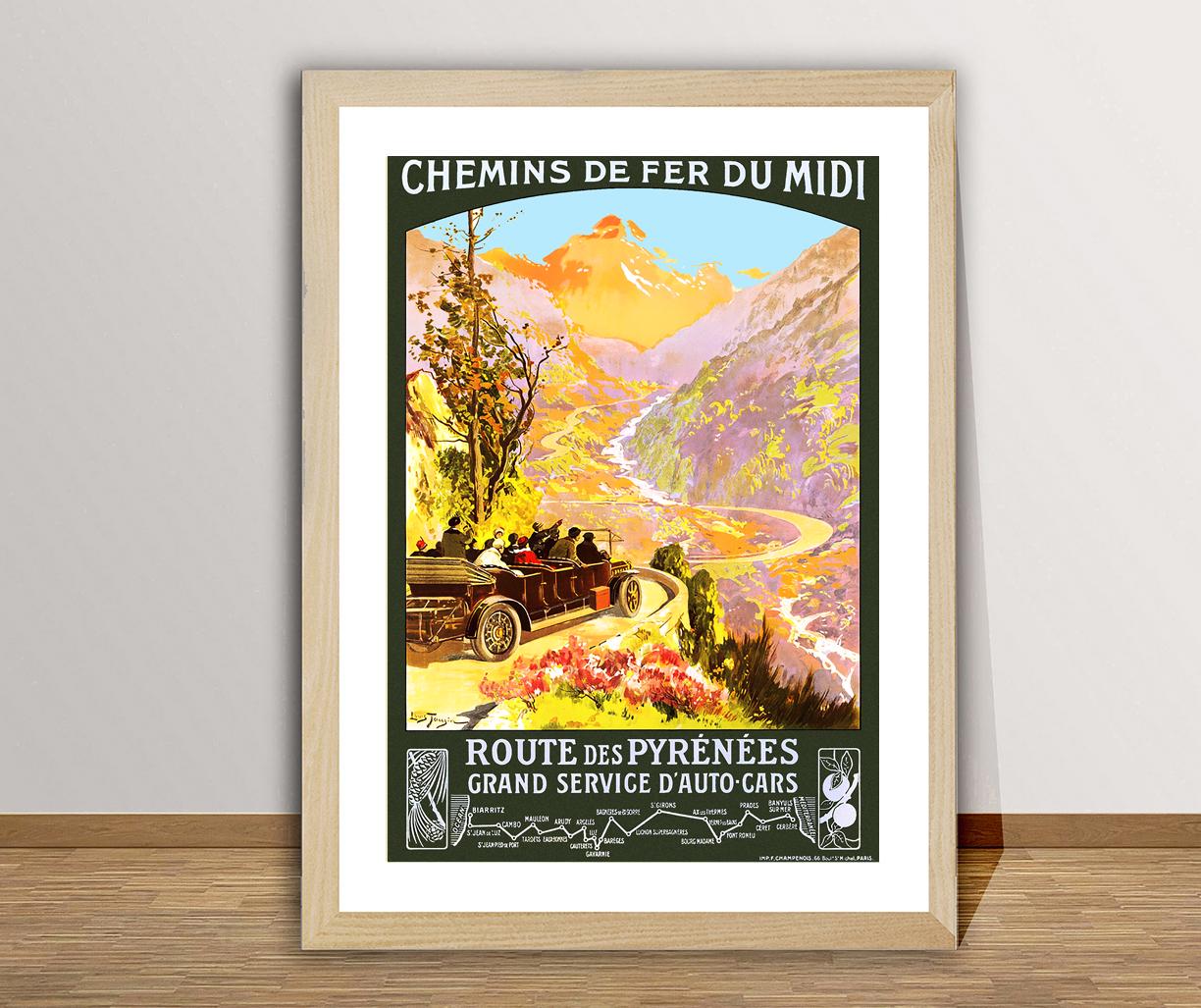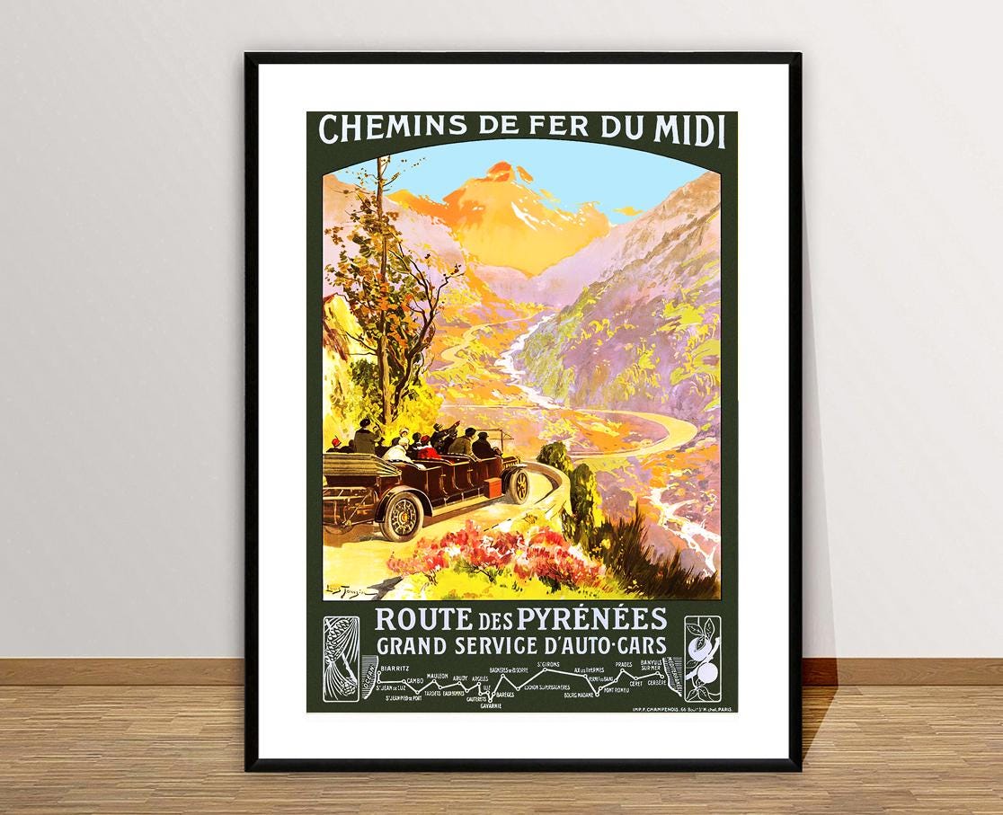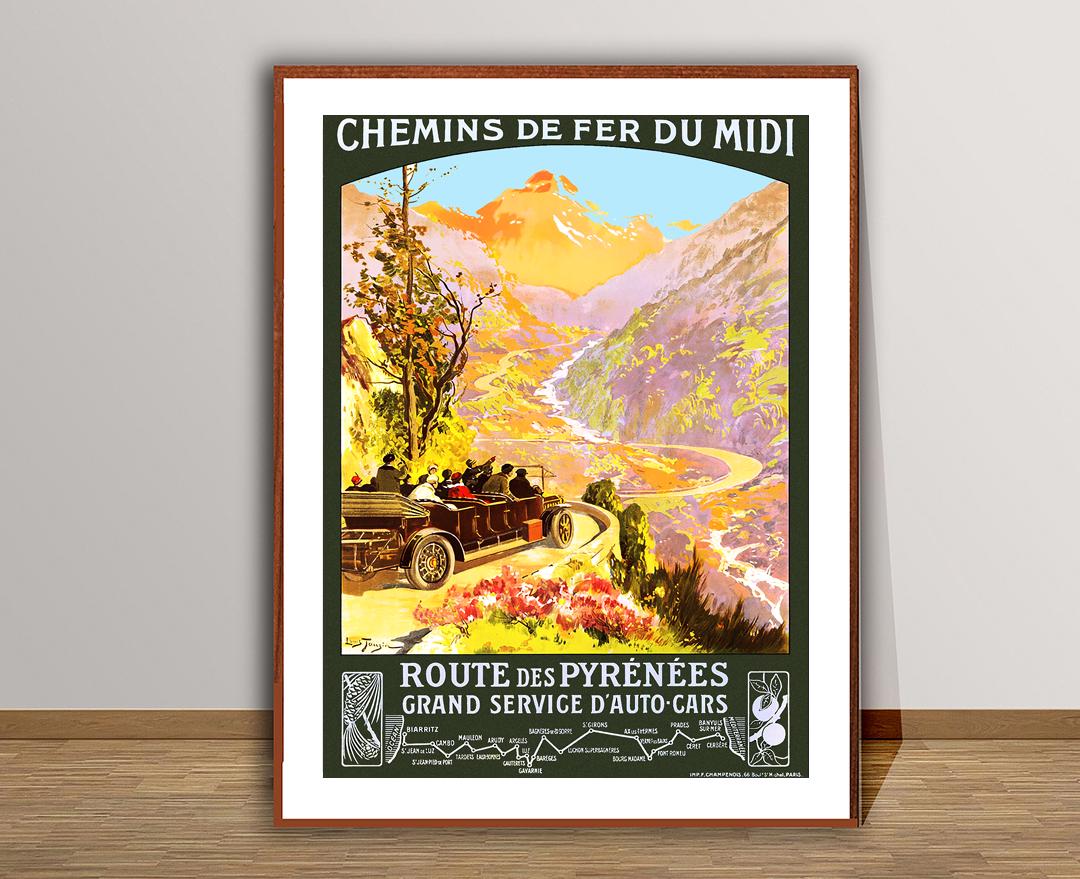 Pyrenees Travel Poster: Vintage French Auto Tour Art Print