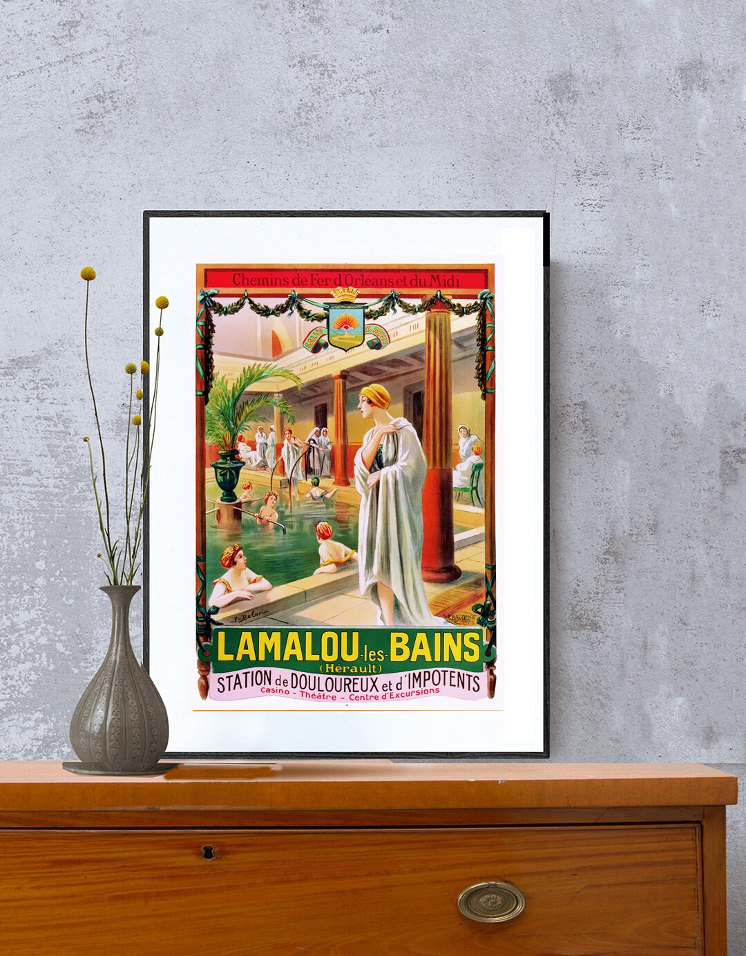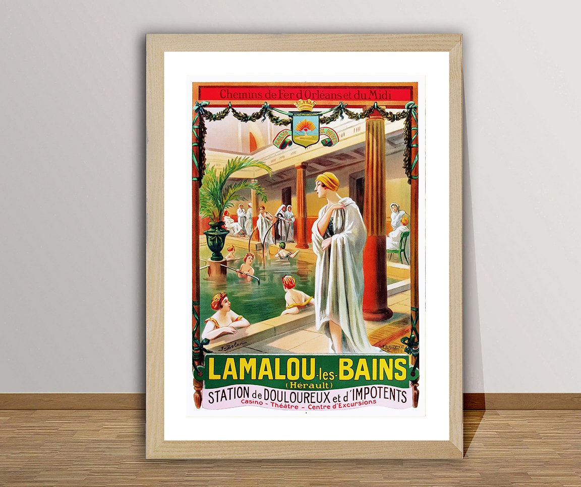 Lamalou Les Bains, France Vintage Travel Poster - Poster Paper or Canvas Print / Gift Idea