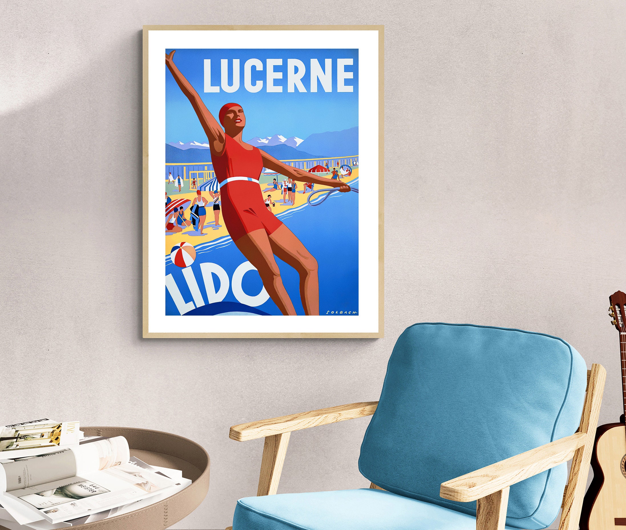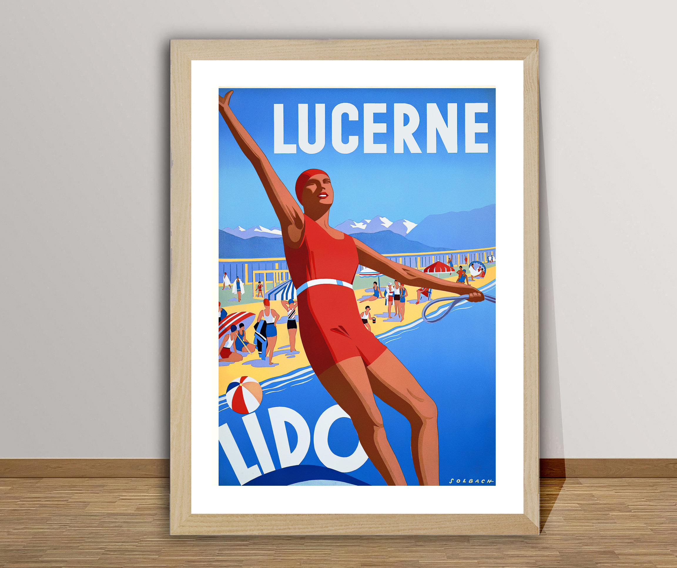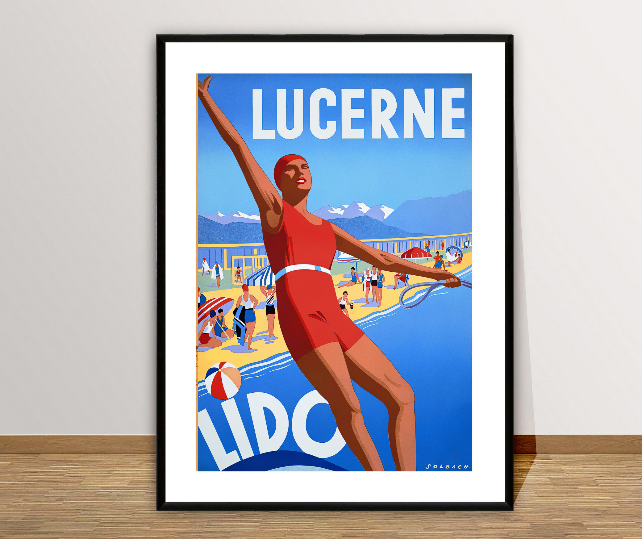 Lucerne Lido Vintage Travel Poster - Poster Print or Canvas Print / Gift Idea / Wall Decor