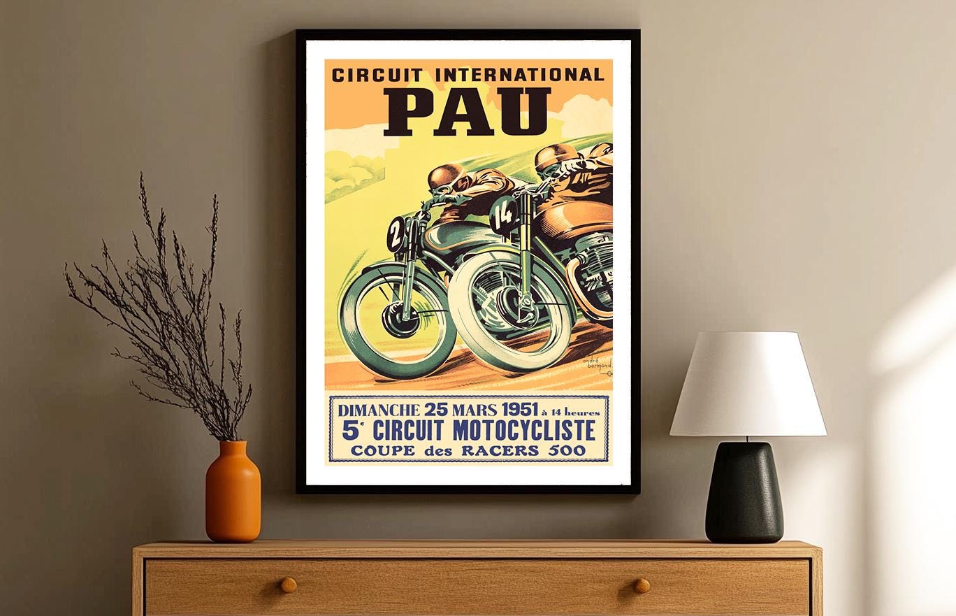 Circuit International Pau Motocycliste, 5 e Circuit Motocycliste Vintage Motorcyle Poster - Poster Paper, Canvas Print / Gift Idea / Wall Decor