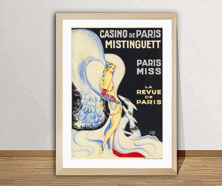 Vintage Mistinguett, Paris Advertisement Art Print - Reproduction of a Vintage Artwork, Decorative Purposes Wall Decor