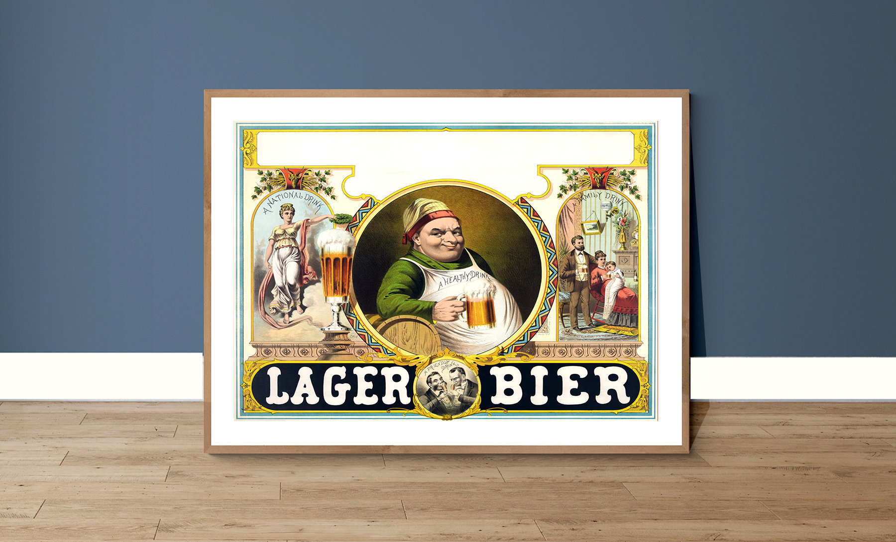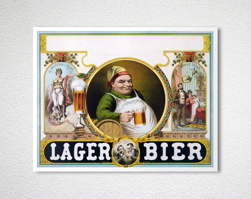 Vintage Lager Bier Advertisement Art Print - Reproduction of a Vintage Artwork, Decorative Purposes Wall Decor - Poster Paper or Canvas Print