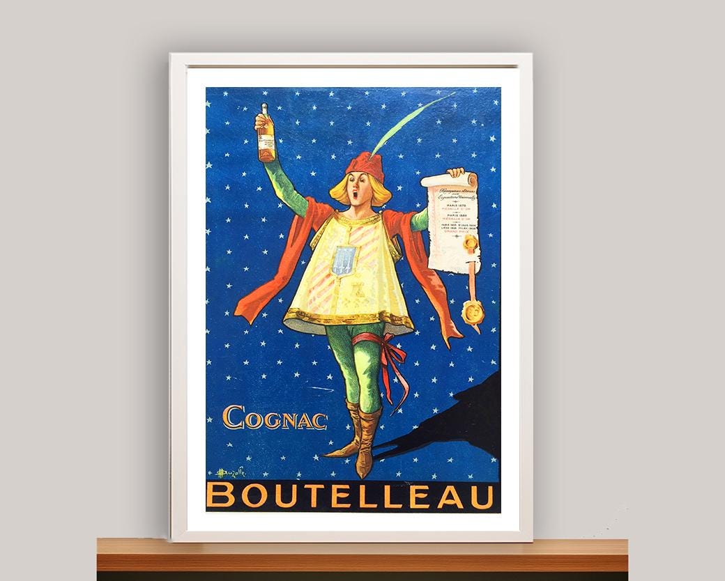 Vintage Cognac Boutelleau Advertisement Art Print - Reproduction of a Vintage Artwork, Decorative Purposes Wall Decor - Poster Paper or Canvas Print / Gift Idea / Wall Decor