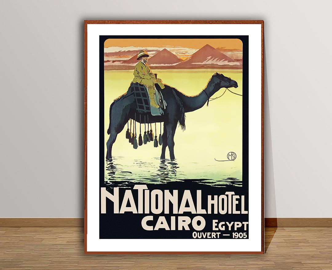 National Hotel Cairo Egypt, Ouvert Vintage Travel Poster - Poster Paper or Canvas Print