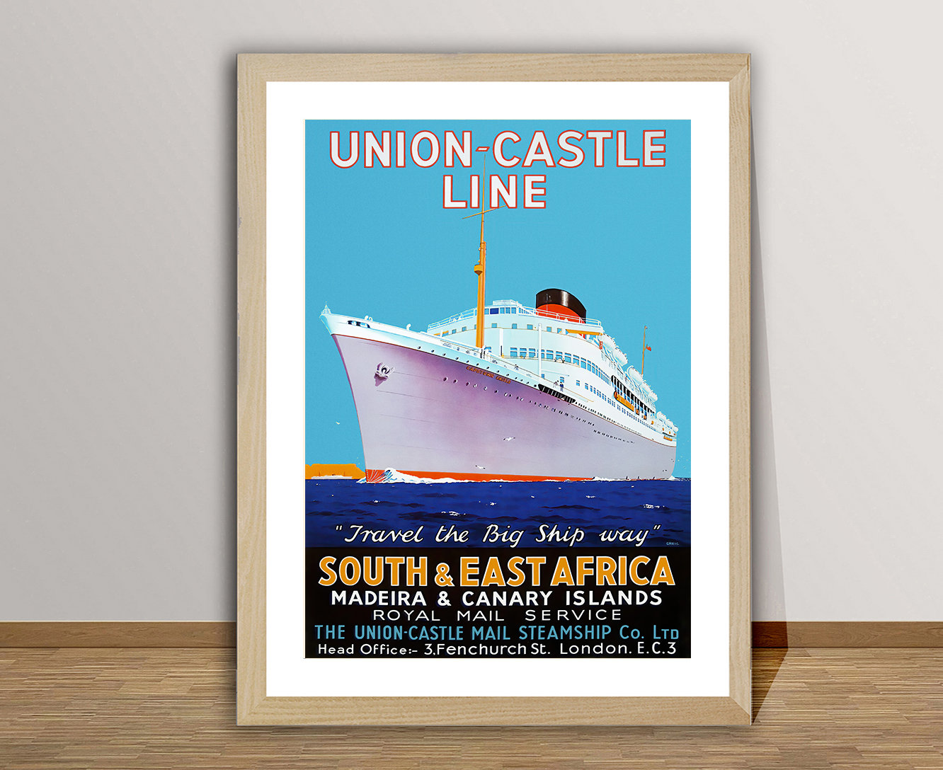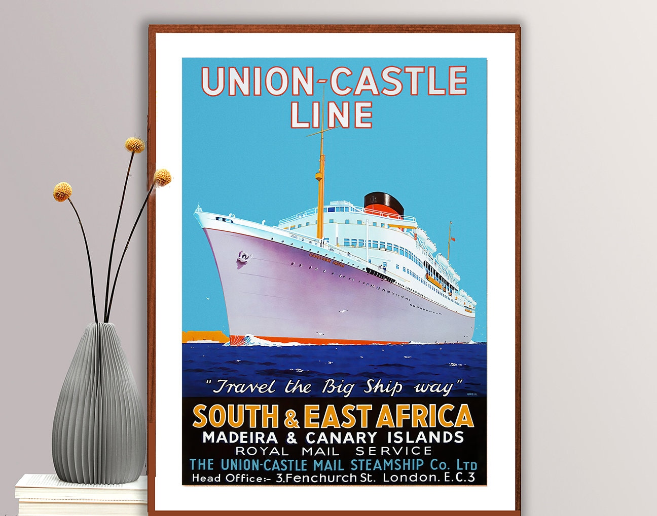 Union Castle Line Travel the Big Ship Way South and East Africa Vintage Travel Poster - Poster Paper or Canvas Print / Gift Idea / Wall Decor