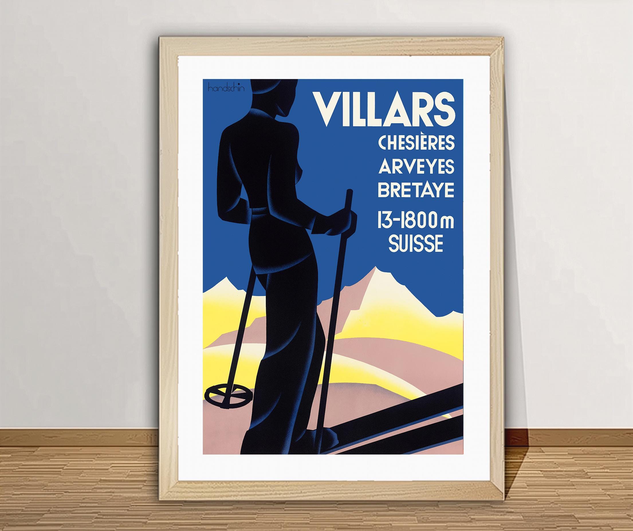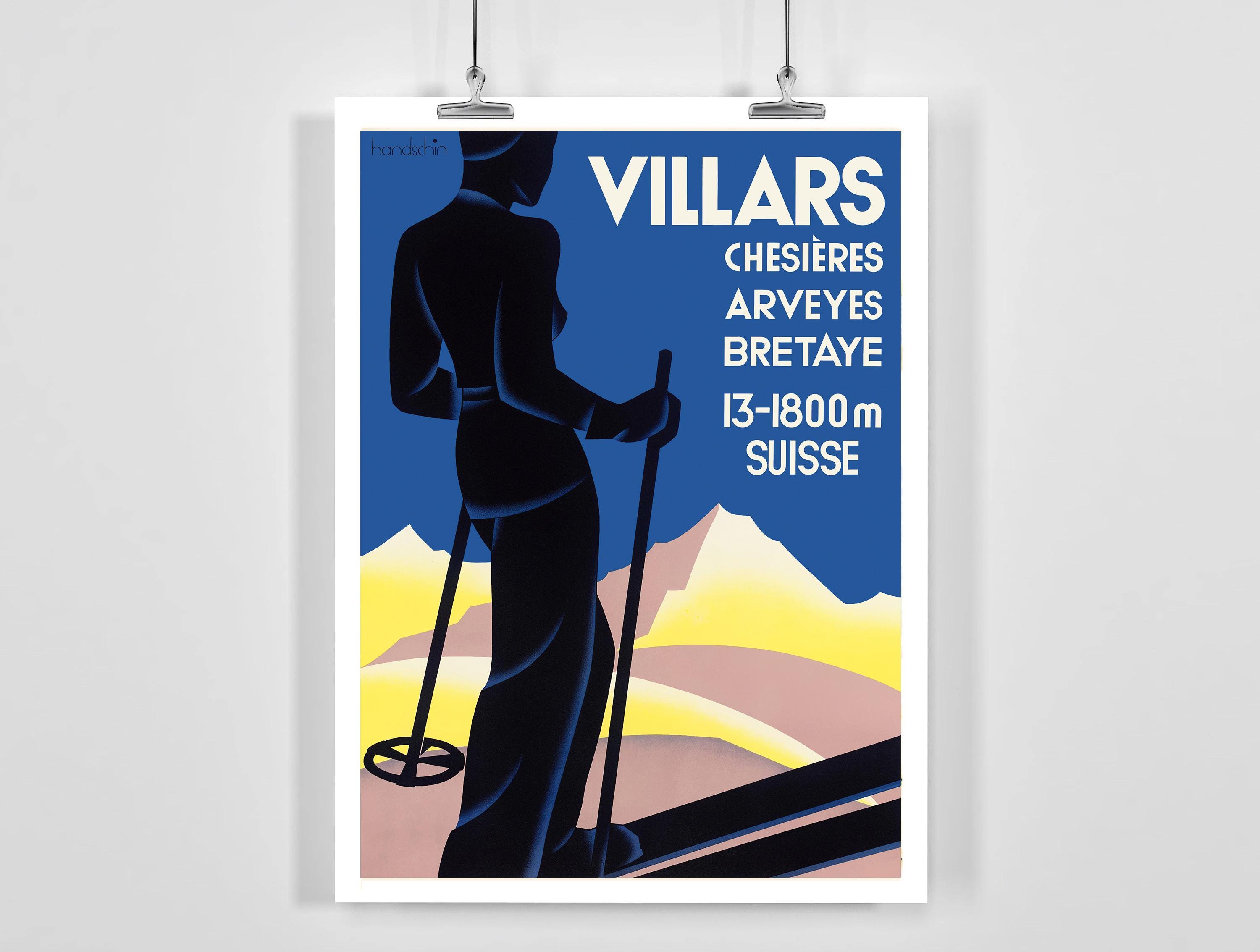 Villars Chesieres, Arveyes, Bretaye Suisse Vintage Ski Poster - Poster Paper or Canvas Print
