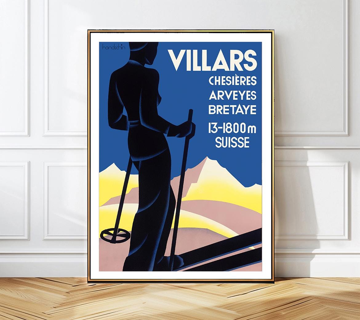 Vintage Villars Suisse Ski Poster: Swiss Winter Sports Wall Art