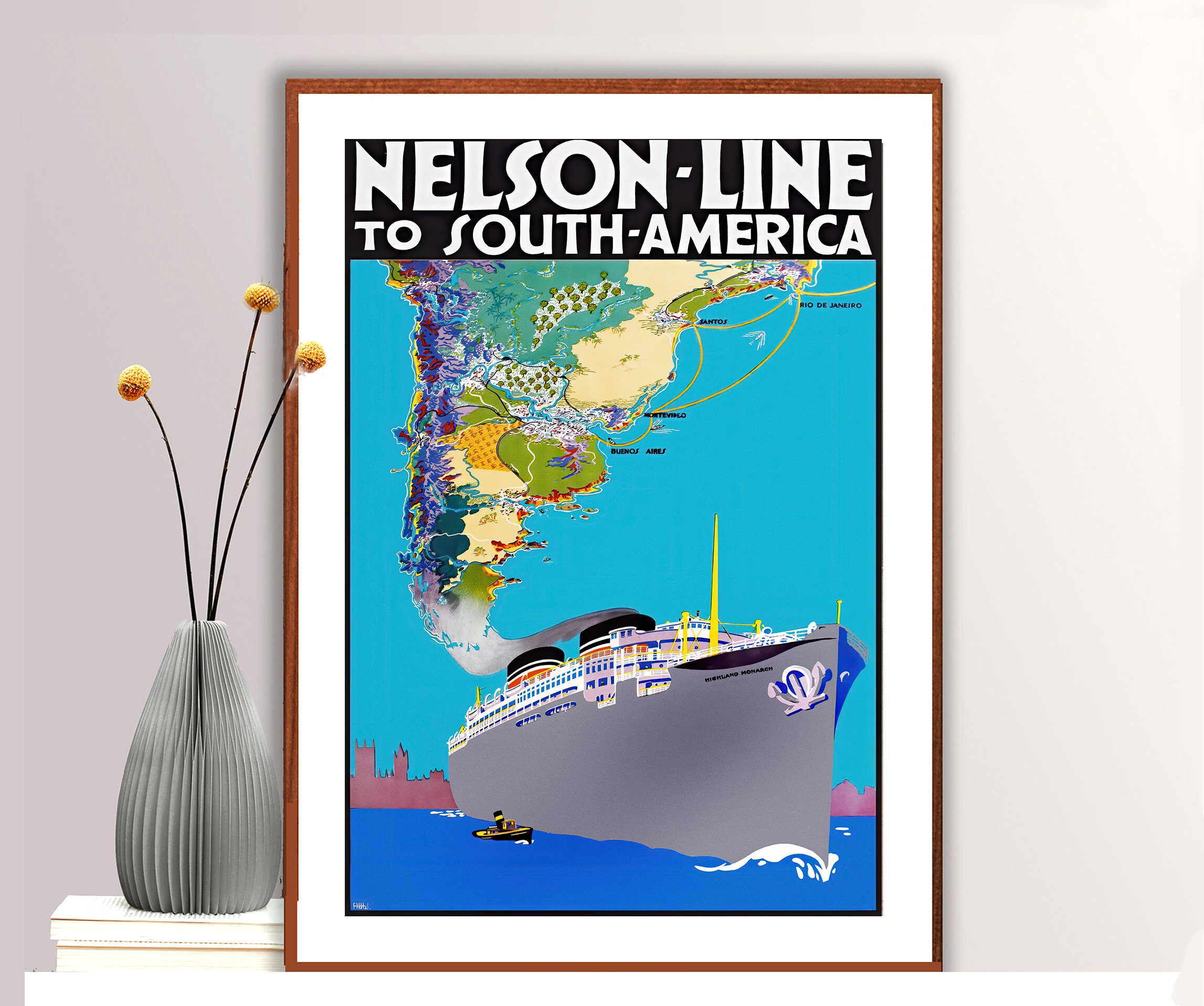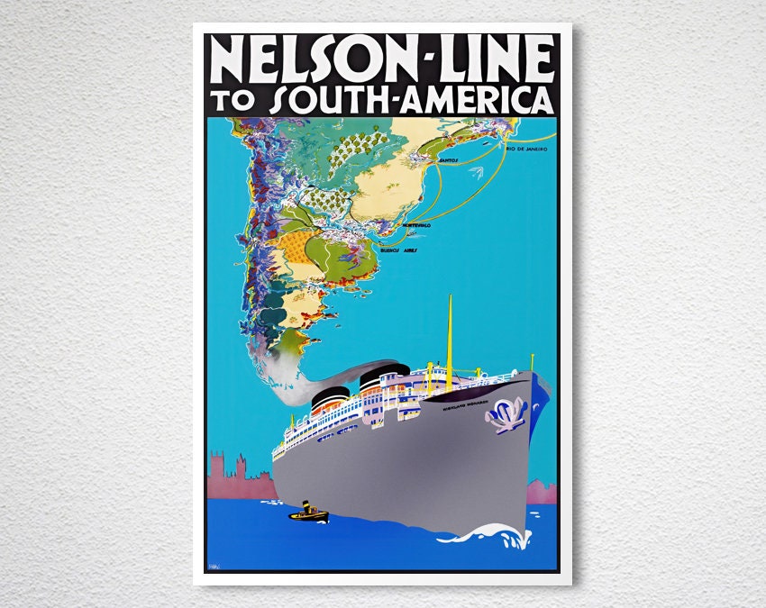 Nelson Line to South America Vintage Travel Poster - Poster Paper or Canvas Print / Gift Idea / Wall Decor