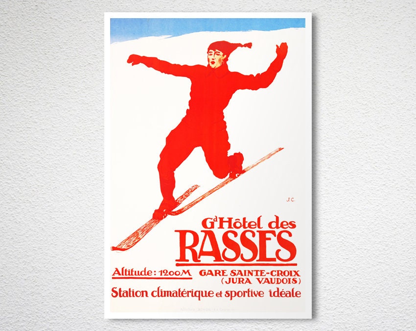 Vintage Ski Poster: Grand Hotel des Rasses Travel Print