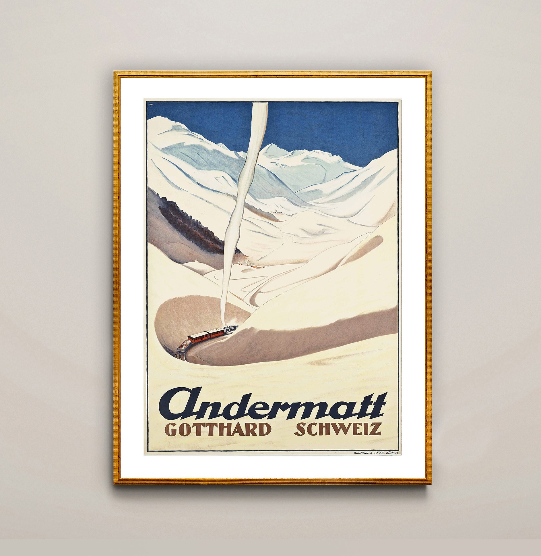 Vintage Andermatt Switzerland Ski Poster: Swiss Travel Art