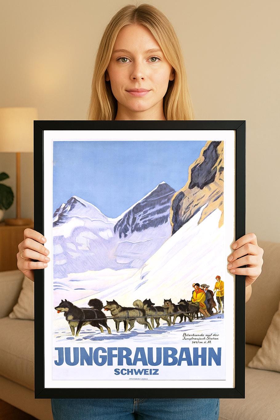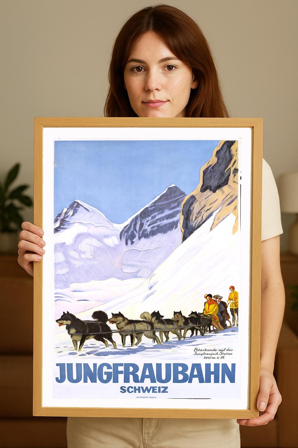 Jungfraubahn Suisse Vintage Travel Poster: Swiss Alps Art Print