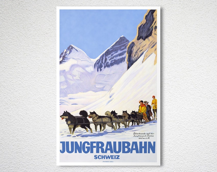 Jungfraubahn, Suisse Vintage Travel Poster - Poster Paper or Canvas Print / Gift Idea / Wall Decor