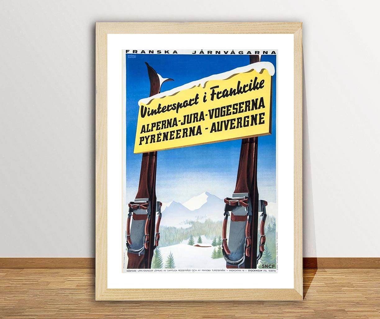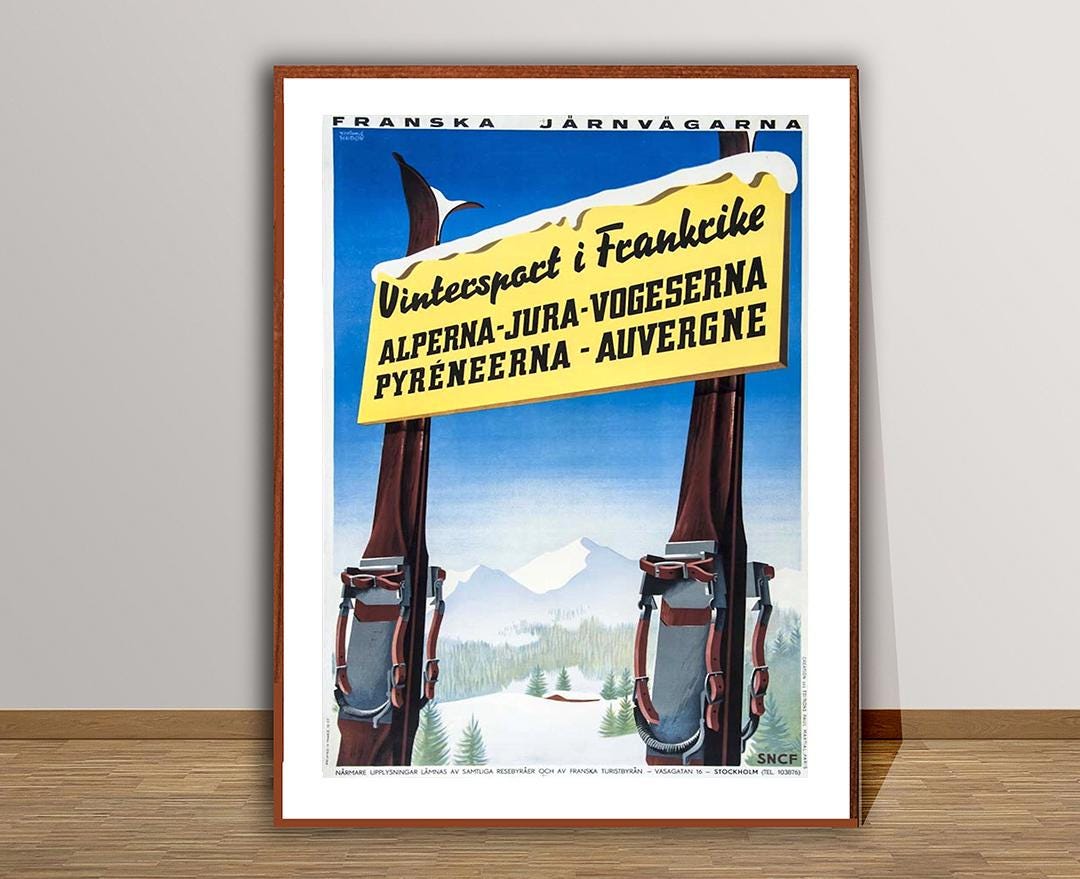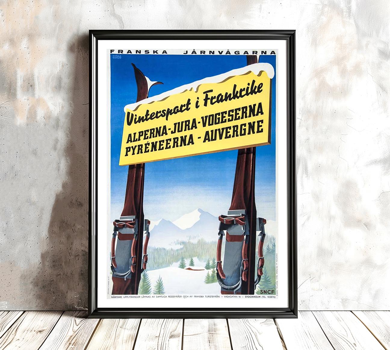 Wintersport Alperna Jura Vogeserna, Pyreneerna Auvergne Vintage Travel Poster - Poster Paper or Canvas Print / Gift Idea / Wall Decor