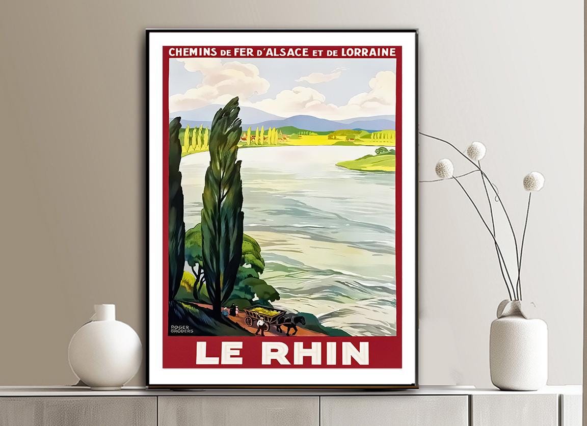 Le Rhin, Chemin de Fer d'Alsace et de Lorraine Vintage Travel Poster - Poster Paper, Canvas Print / Gift Idea / Wall Decor