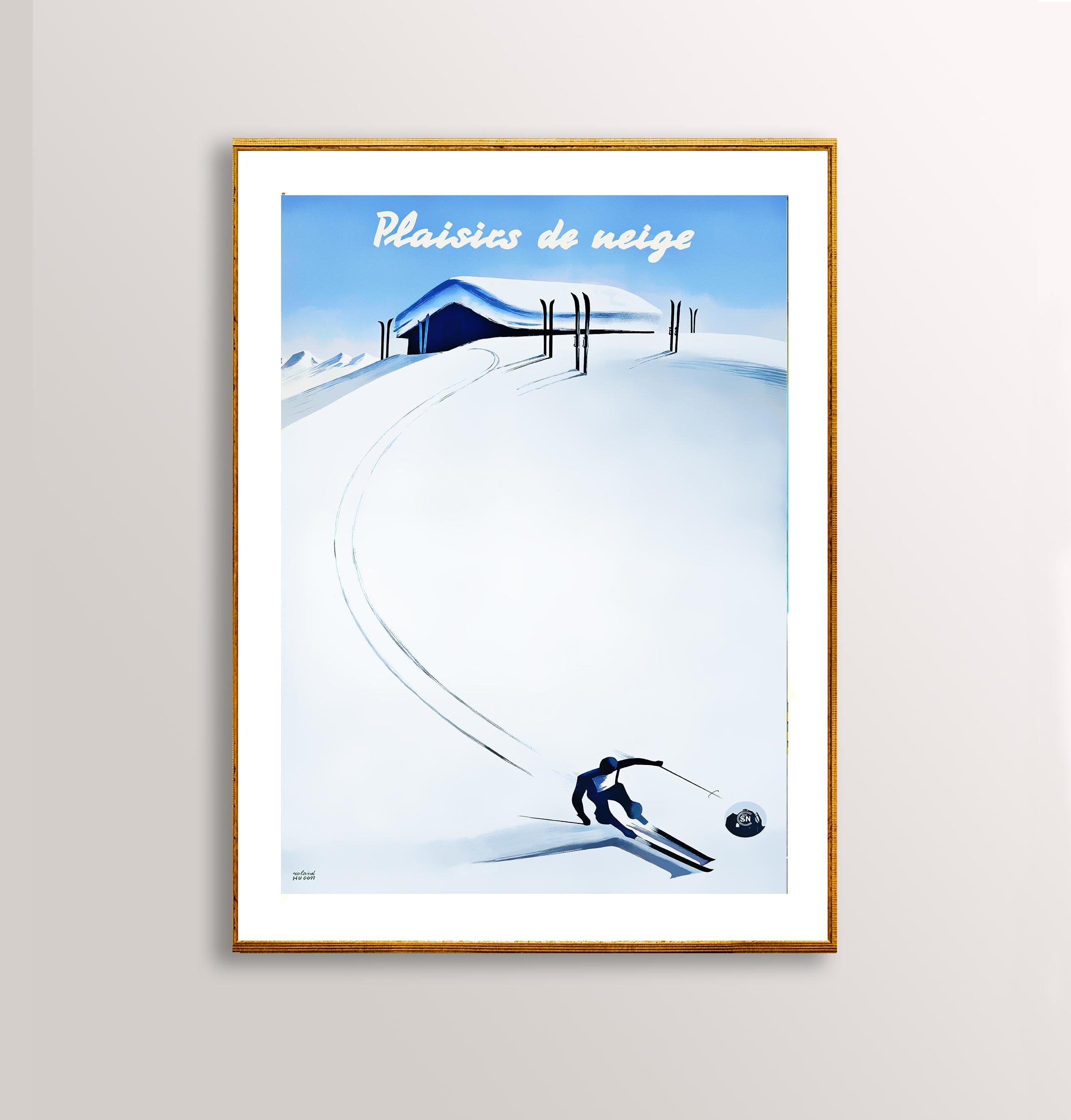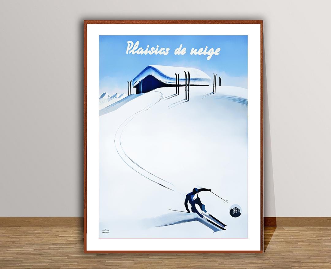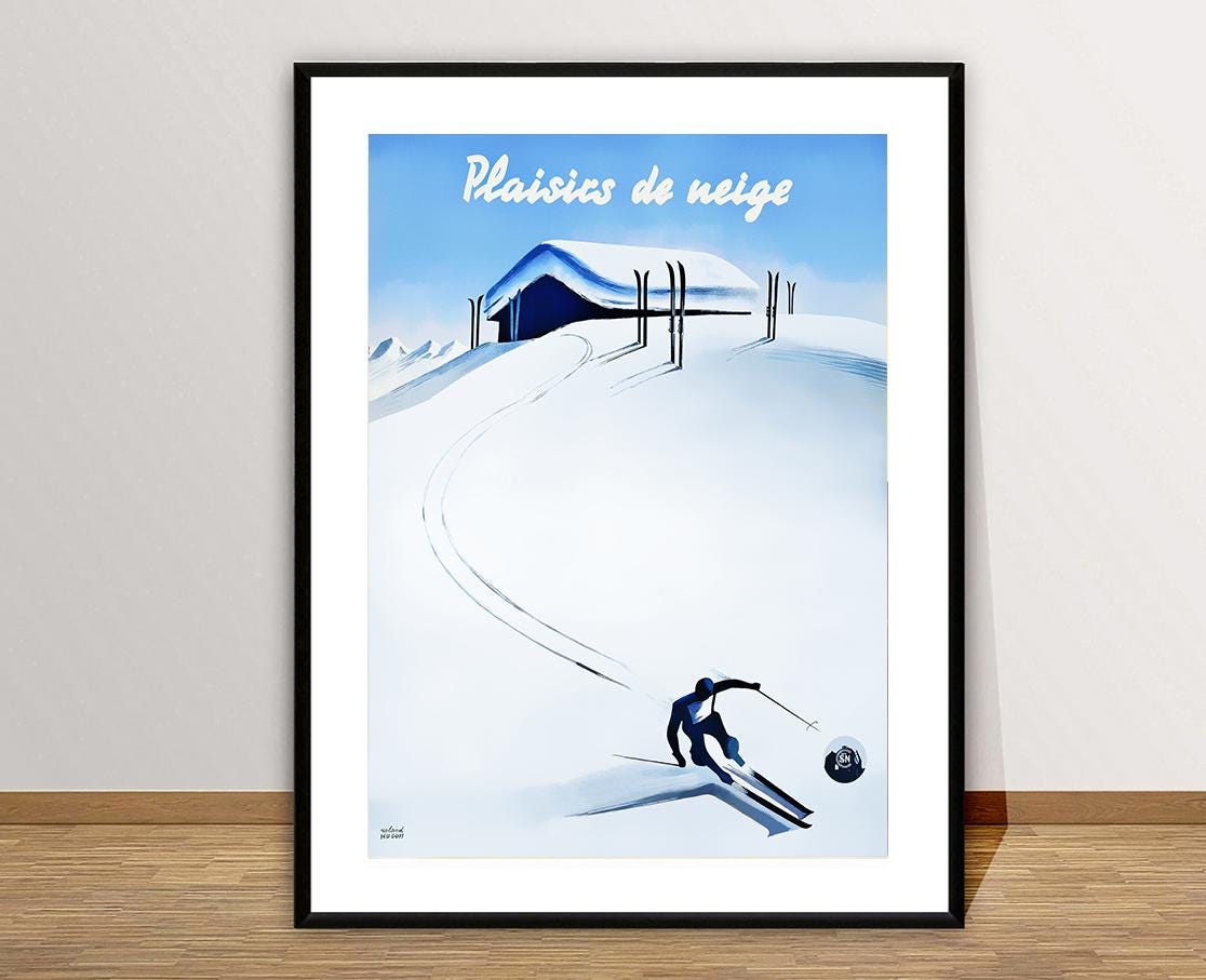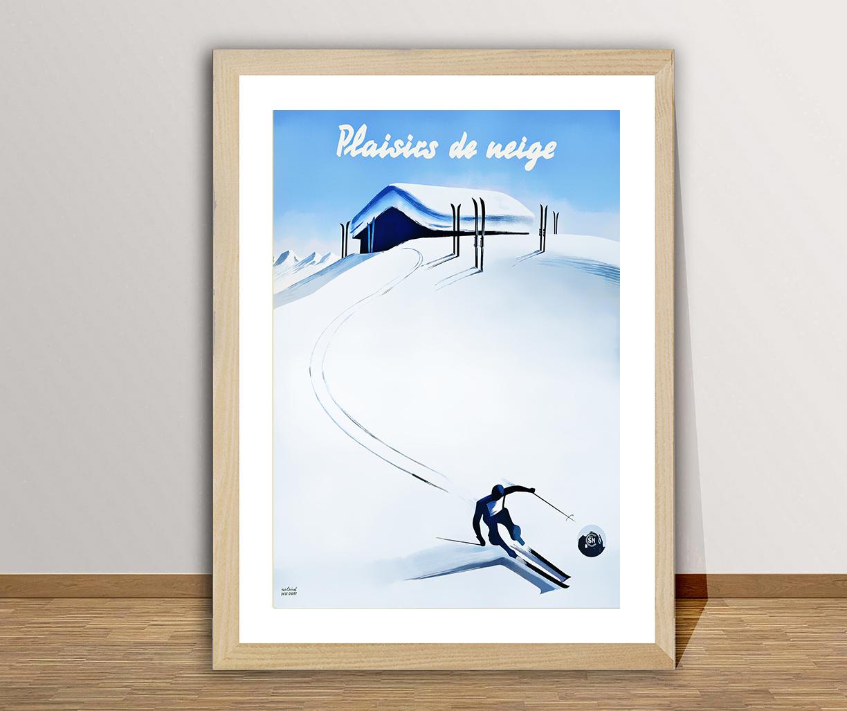 Plaisirs de Neige (Snow Pleasures) Vintage Ski Poster - Poster Paper or Canvas Print / Gift Idea / Wall Decor