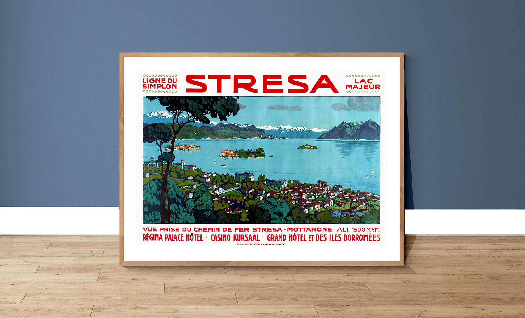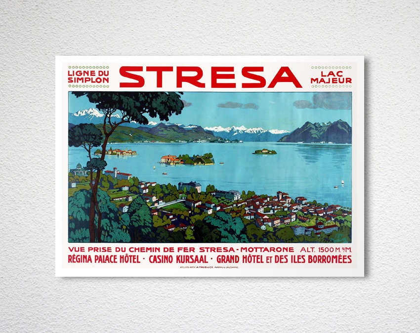 Stresa Lac Majeur, Ligne de Simplon Vintage Travel Poster - Poster Paper or Canvas Print / Wall Decor