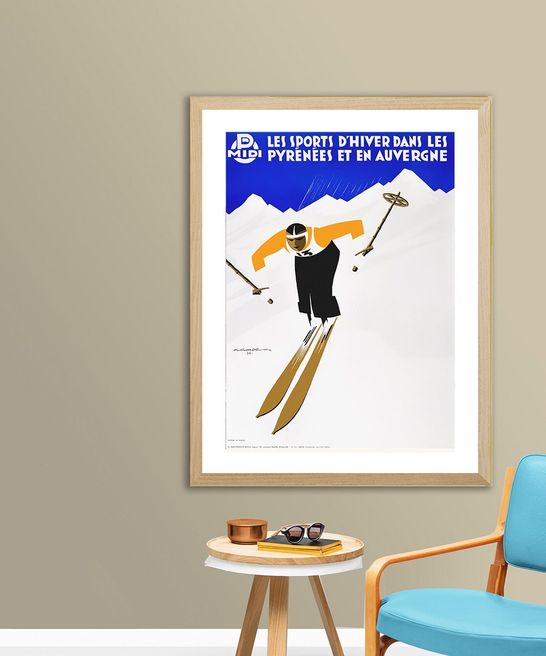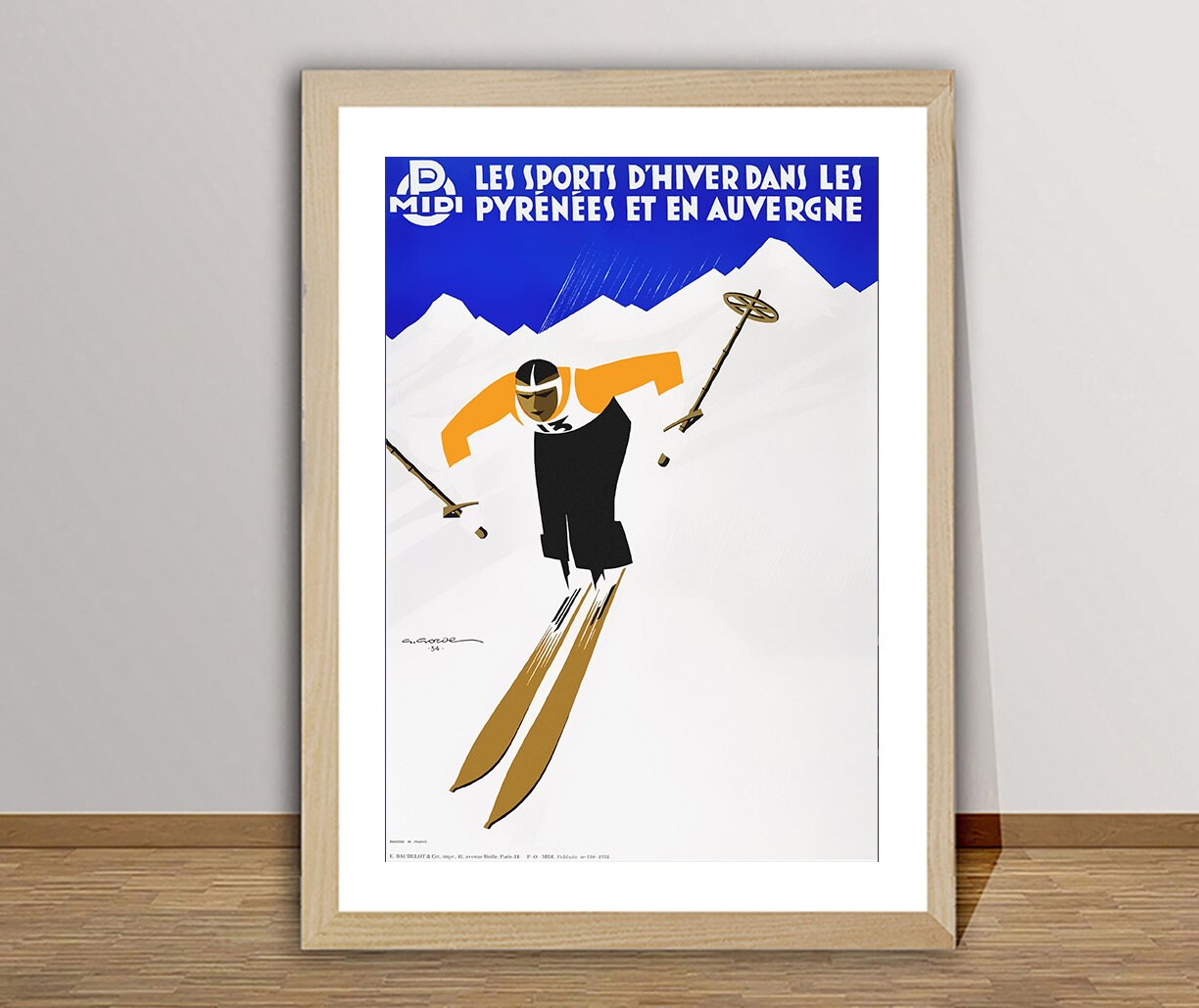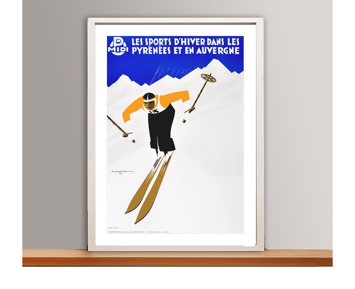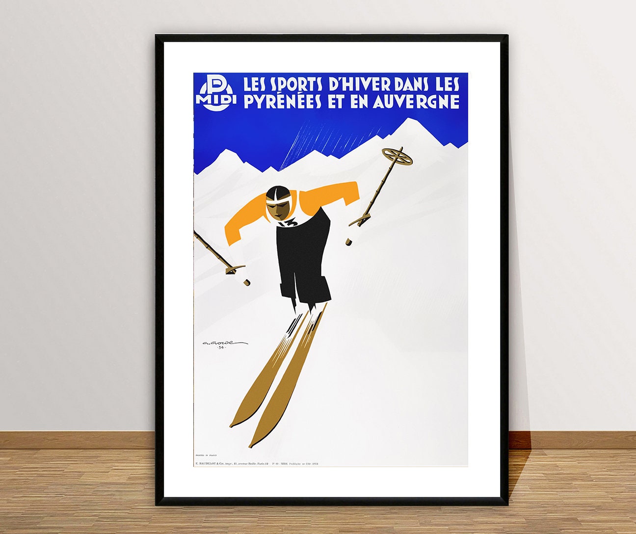 Sports d'Hiver dans Les Pyrenees et En Auvergne, France Vintage Travel Poster - Poster Paper or Canvas Print / Gift Idea