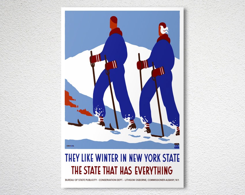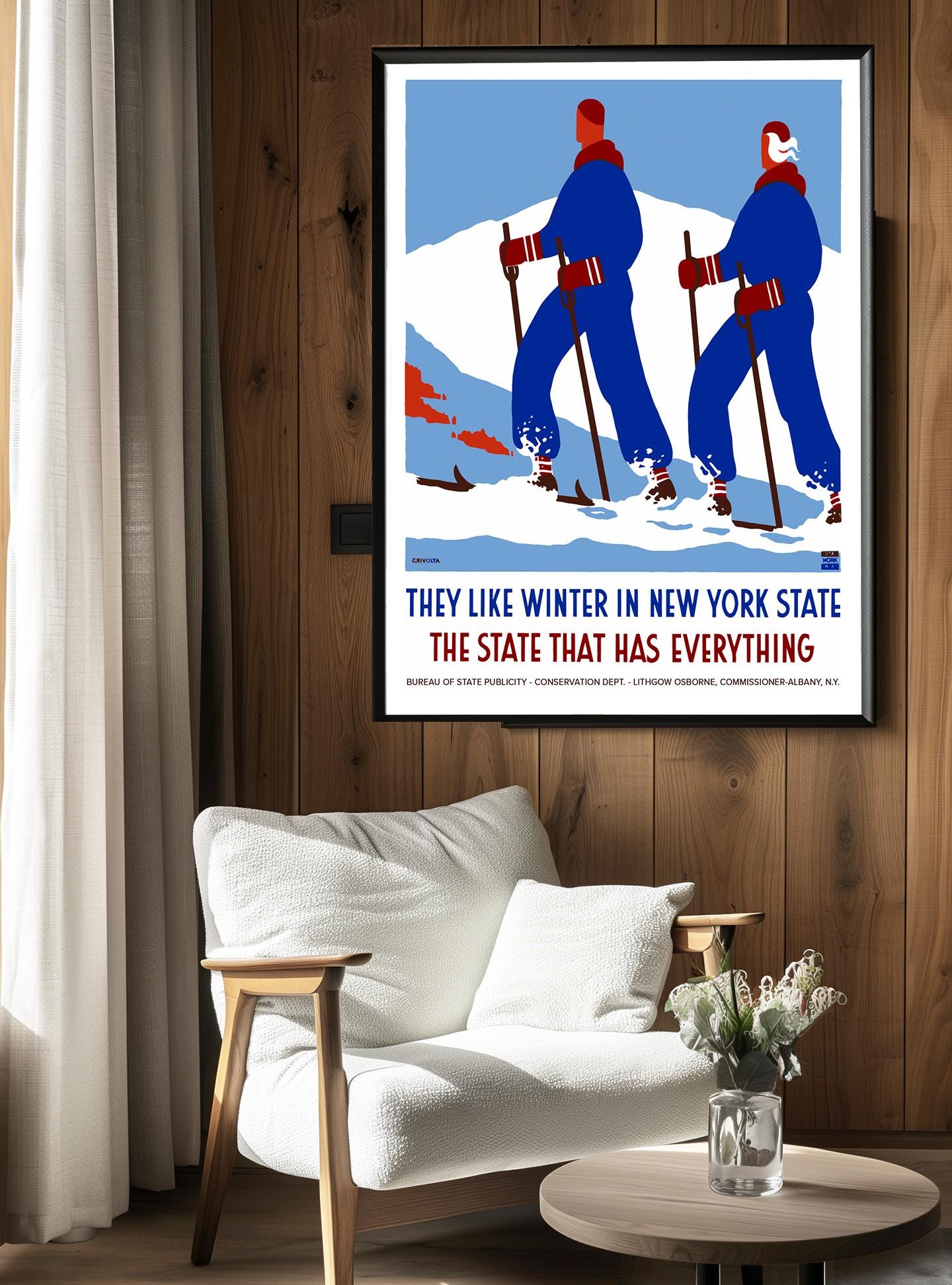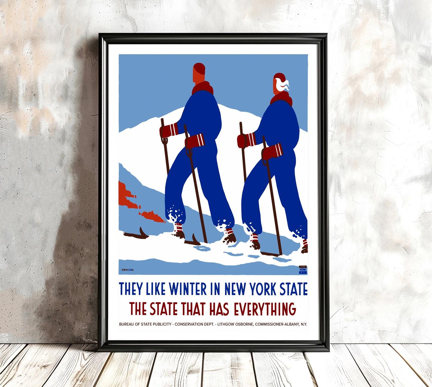 They Like Winter in New York State Vintage Travel Poster - Poster Paper or Canvas Print