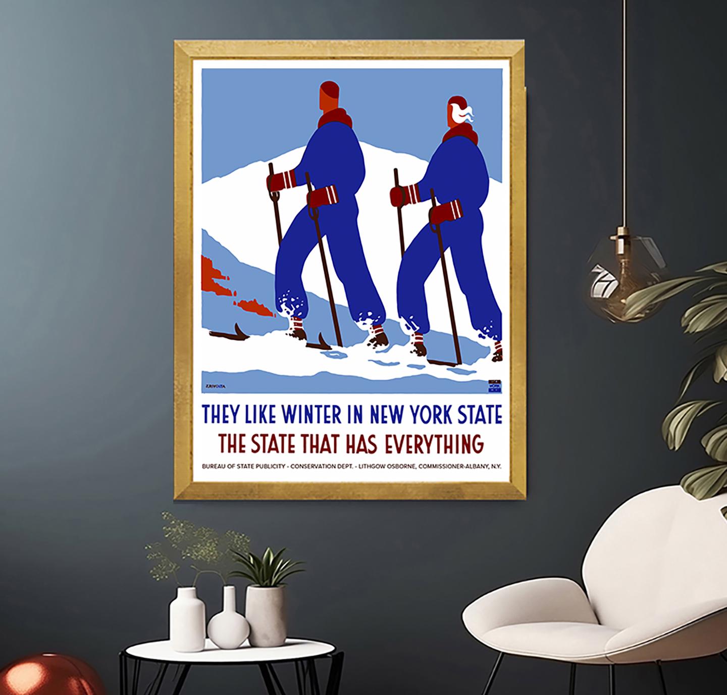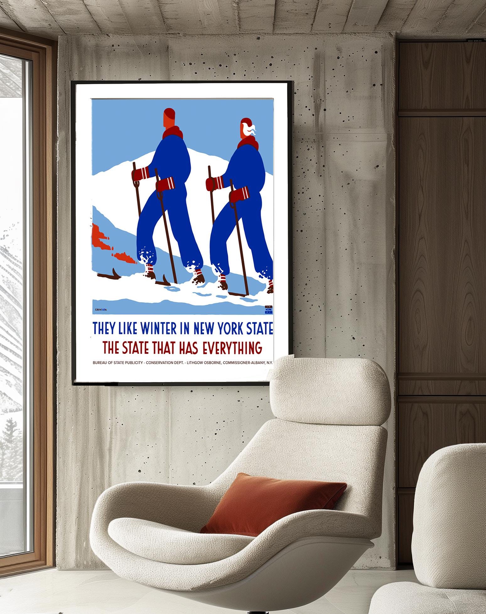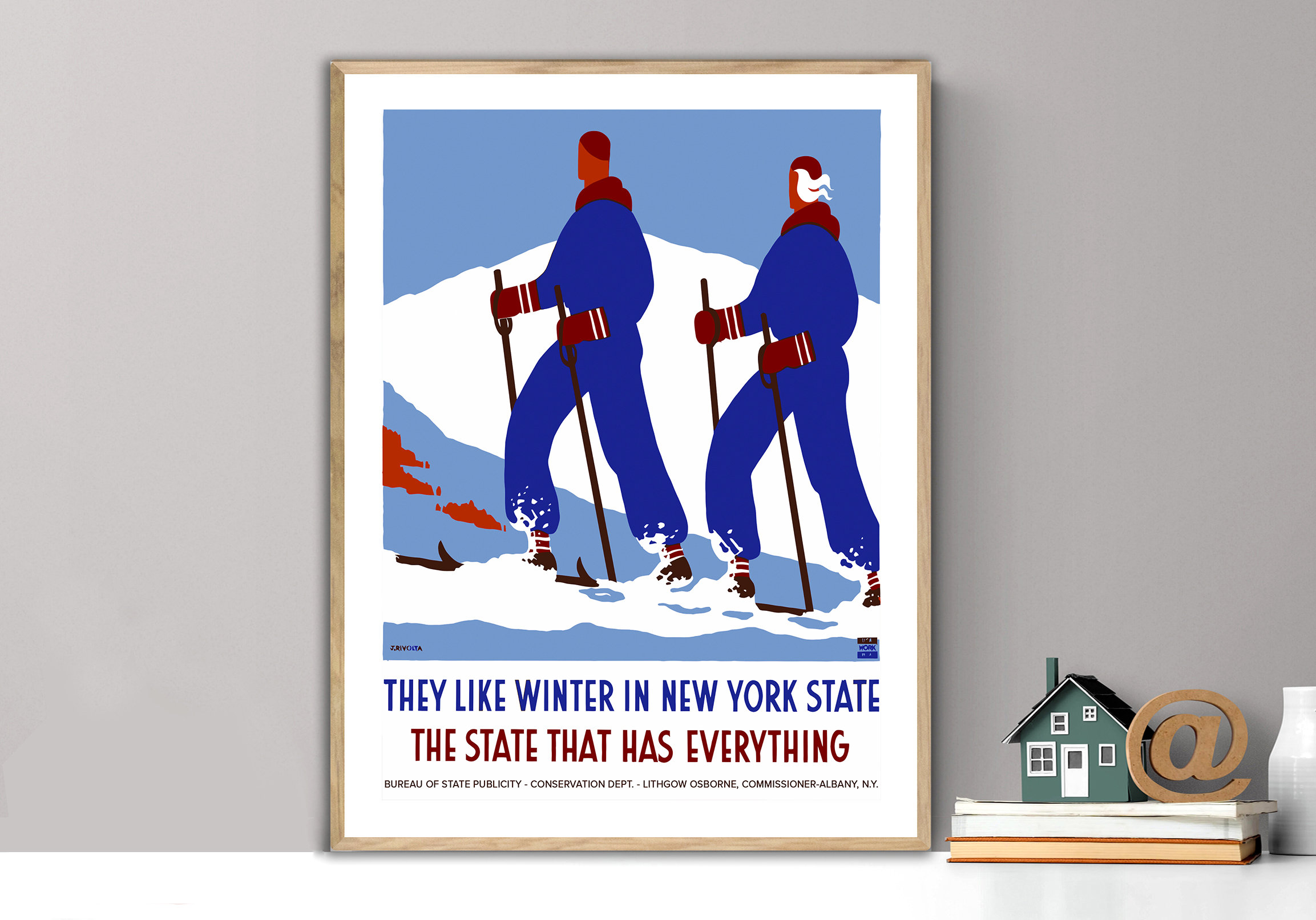 They Like Winter in New York State Vintage Travel Poster - Poster Paper or Canvas Print