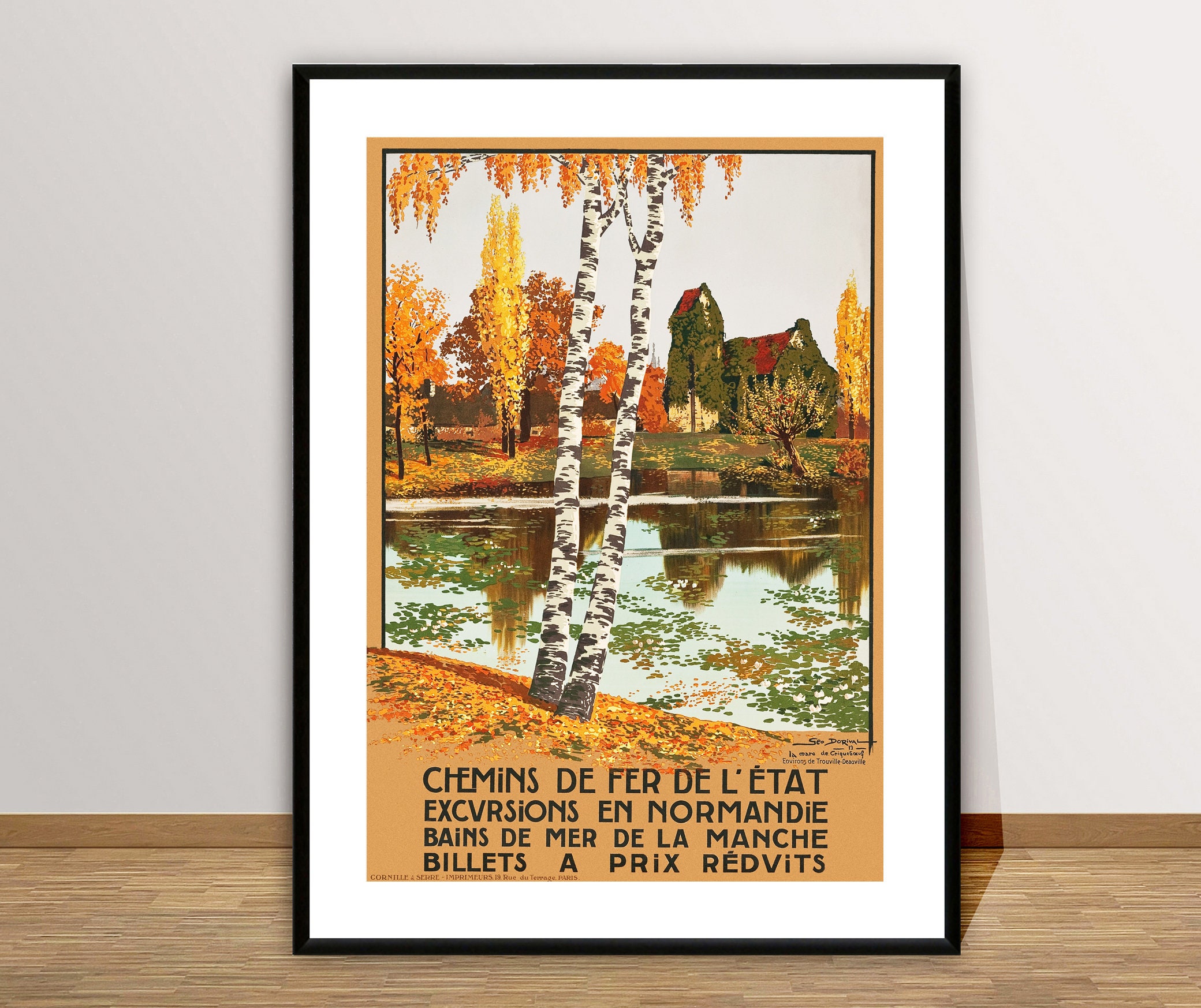 Chemin de Fer de L'etat Excursions en Normandie Vintage Travel Poster - Poster Paper or Canvas Print