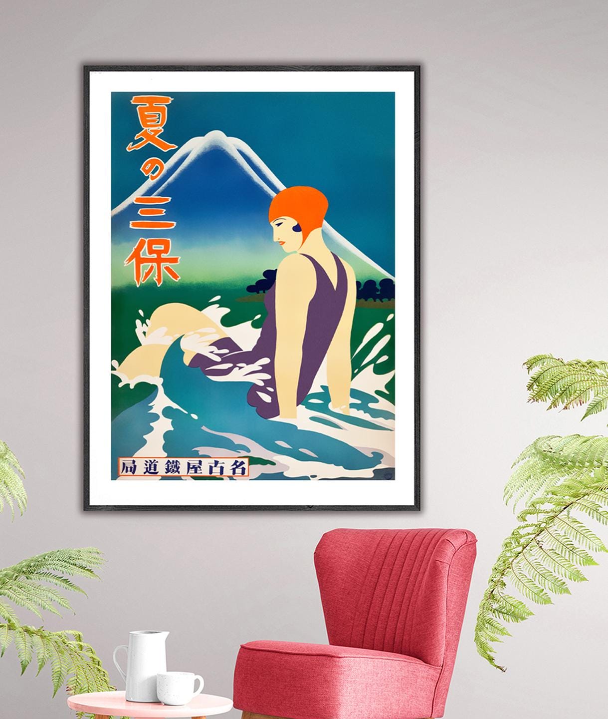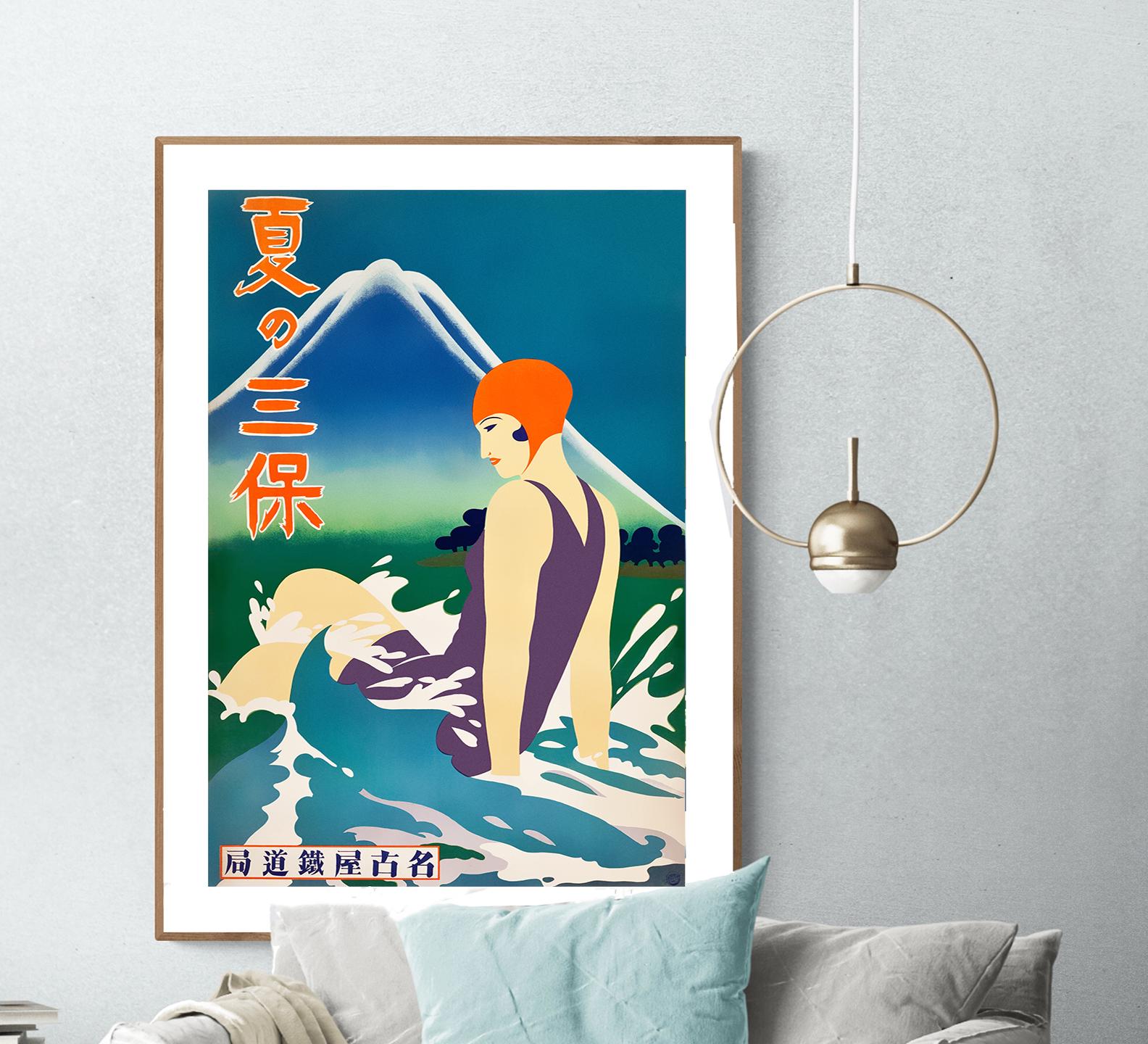 Vintage Japan Travel Poster: Giclee Print, Japanese Art Deco