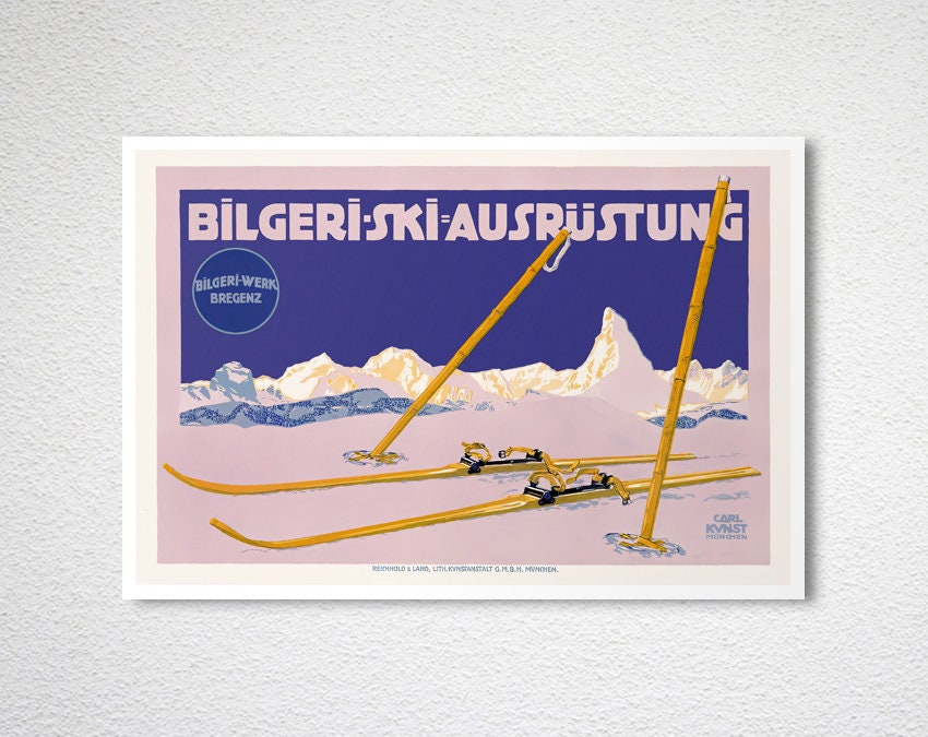 Bilgeri Ski Ausrüstung, Bregenz Austria Vintage Travel Poster - Poster Paper or Canvas Print