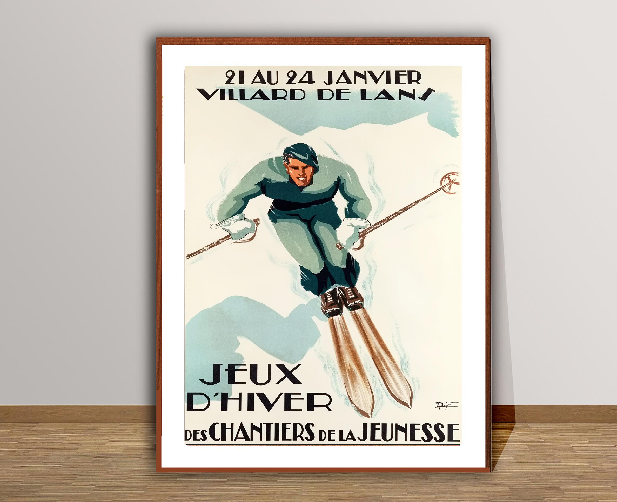 Jeux d'Hiver Villard de Lans, France Vintage Travel Poster - Poster Paper or Canvas Print