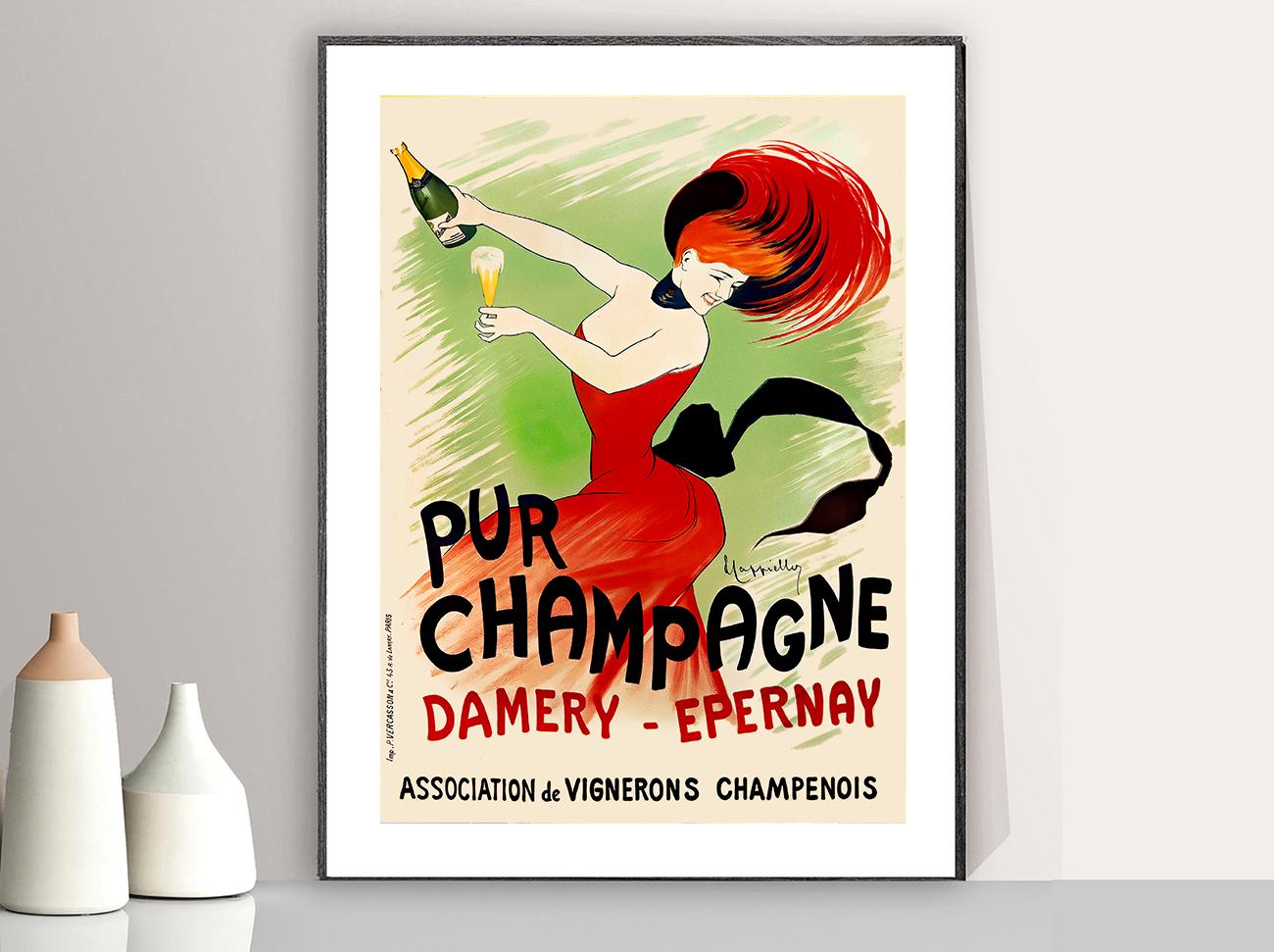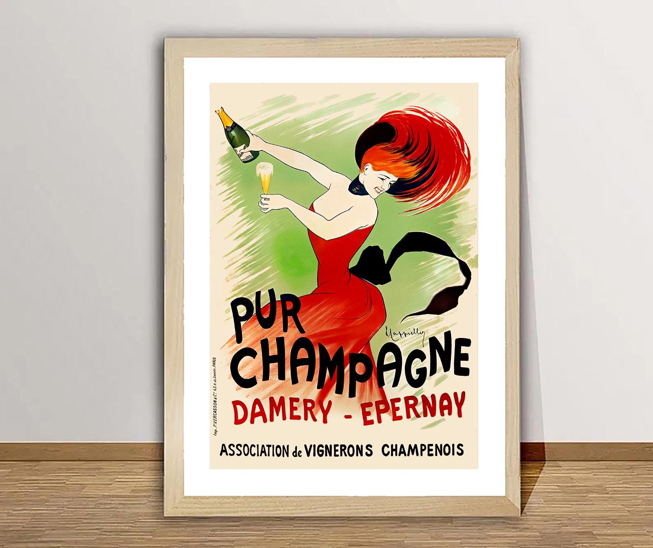 Vintage Pur Champagne Damery Epernay Advertisement Art Print - Reproduction of a Vintage Artwork, Decorative Purposes Wall Decor - Poster Paper, Canvas Print