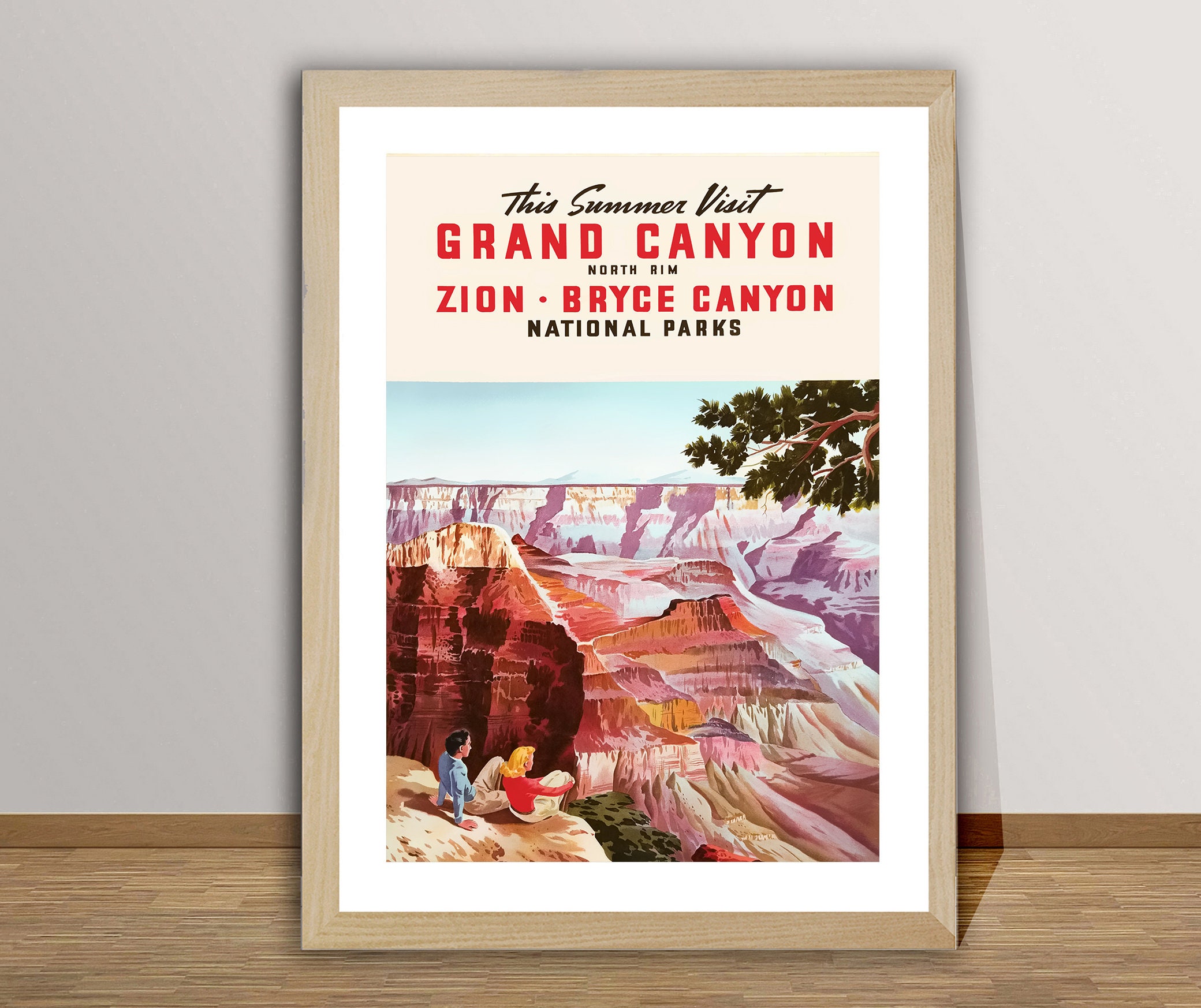 Grand Canyon Vintage Travel Poster: Zion & Bryce Canyon Art Print