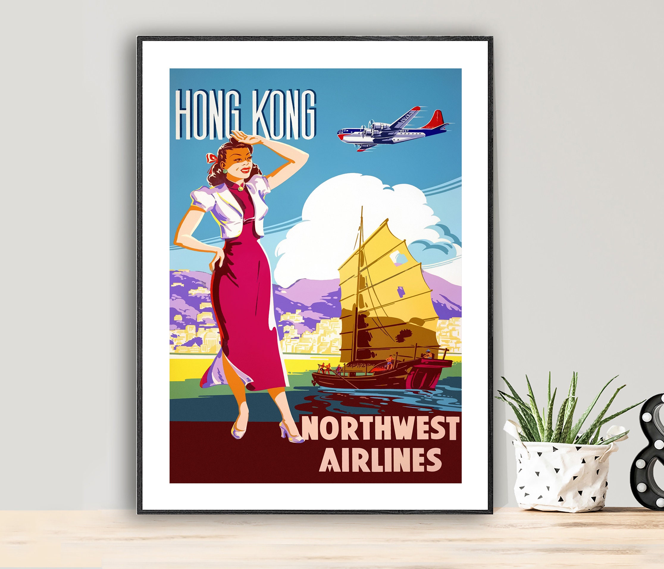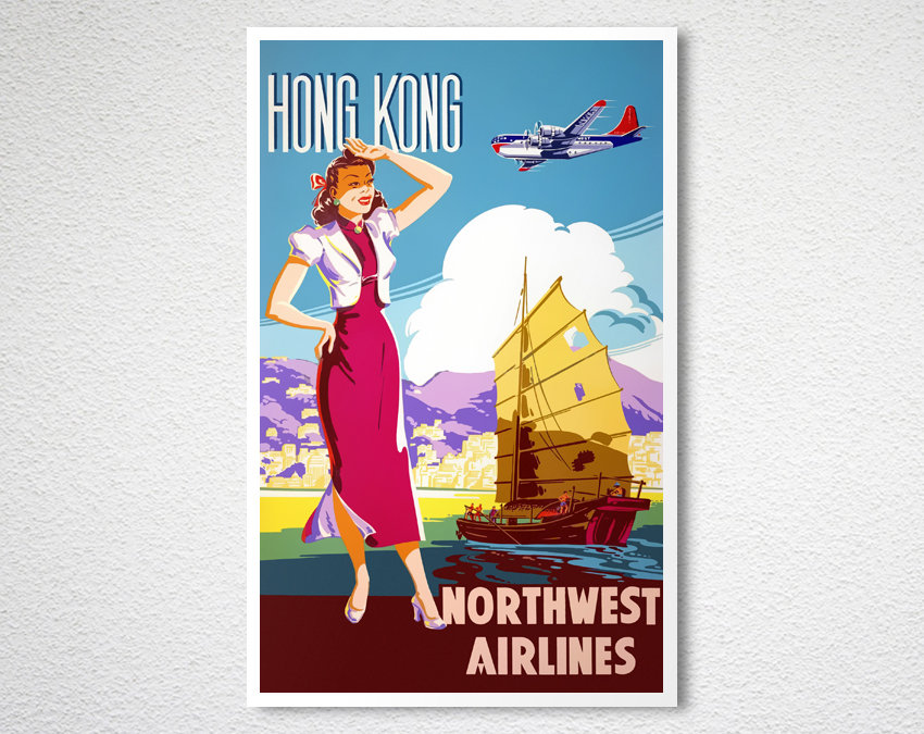 Hong Kong Northwest Airline Travel Poster - Poster Paper or Canvas Print / Gift Idea / Wall Decor