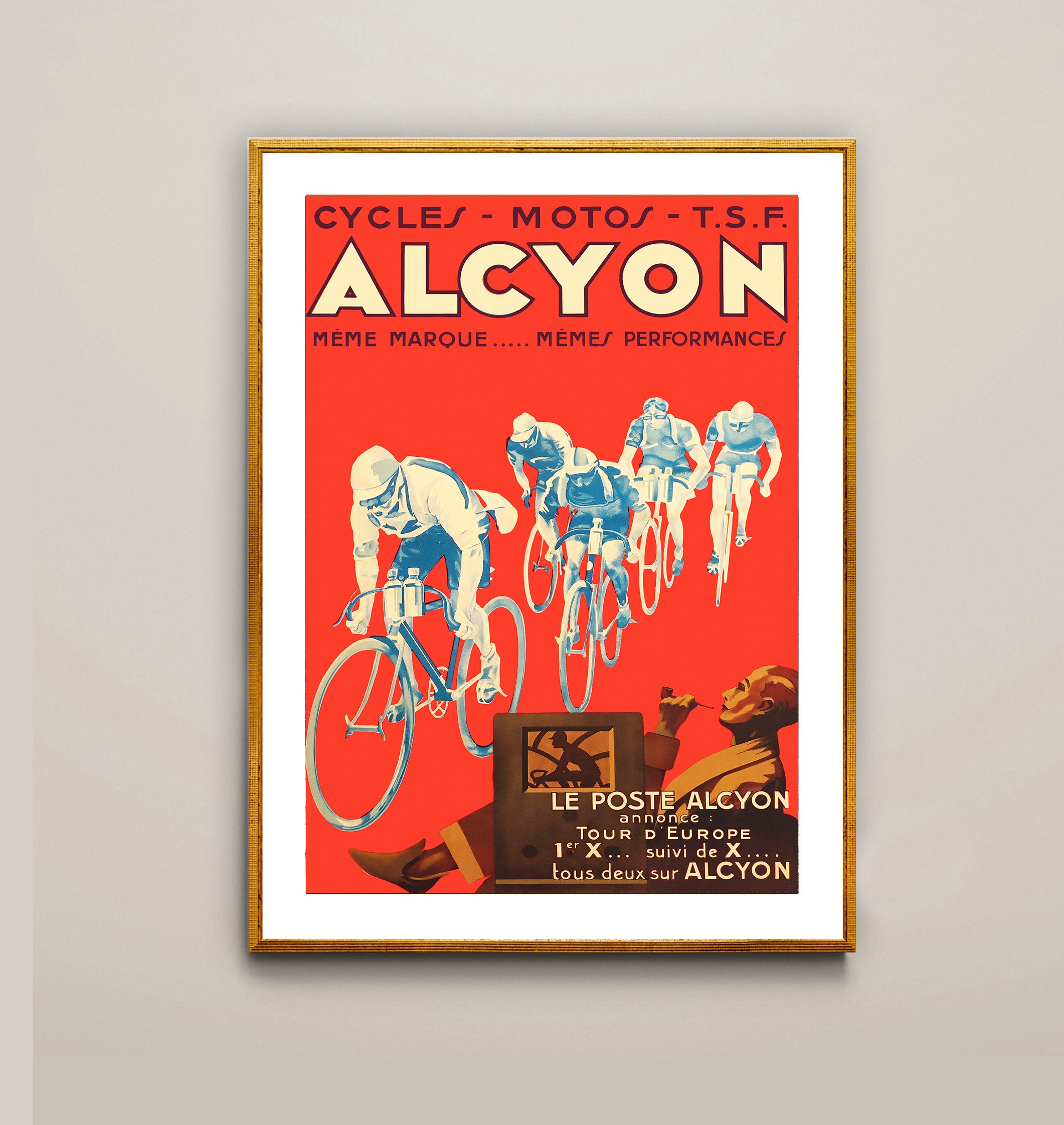 Cycles, Motos Alcyon Vintage Bicycle Poster - Poster Paper or Canvas Print