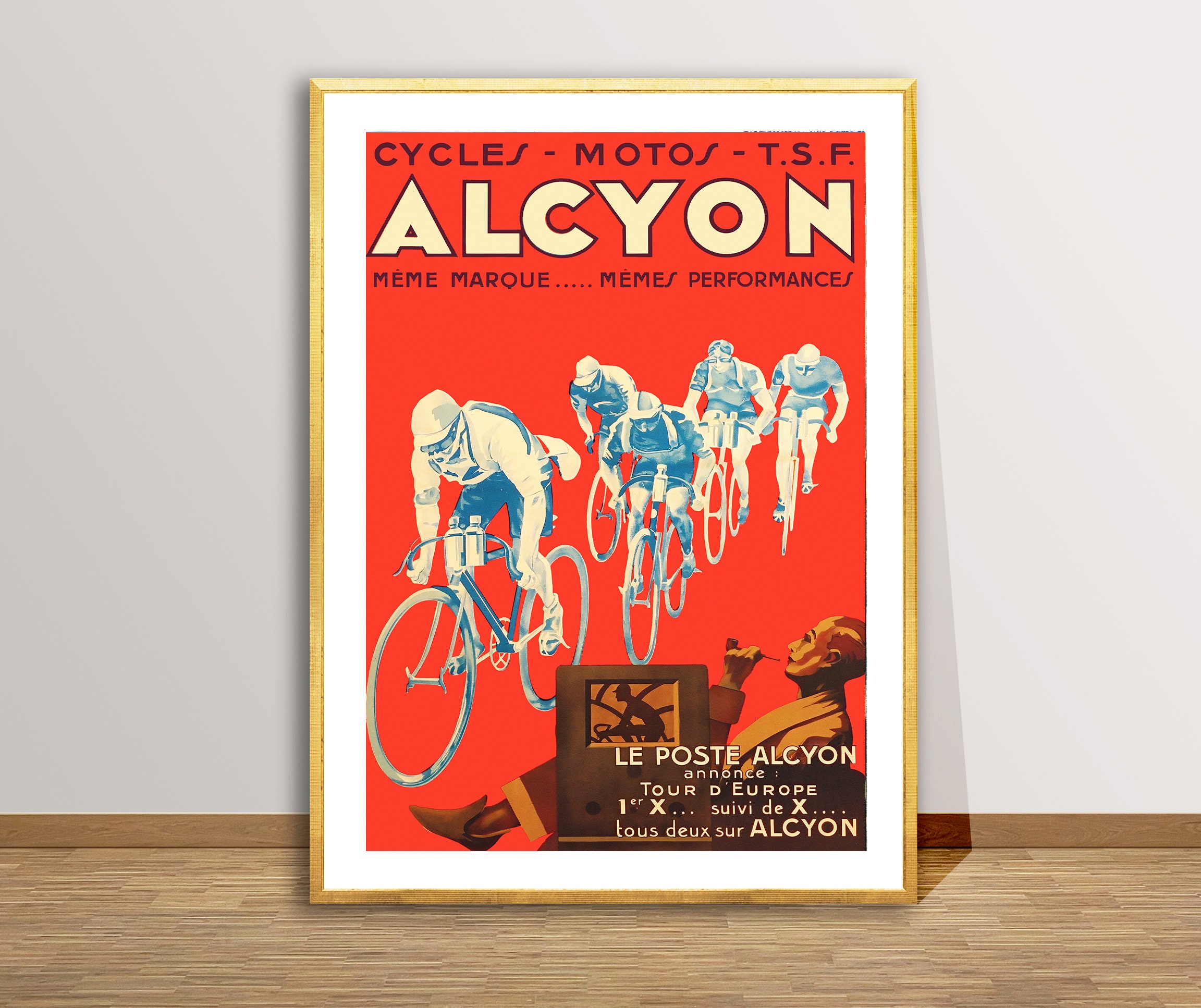 Cycles, Motos Alcyon Vintage Bicycle Poster - Bicycle Advert, Cycling Poster, Retro Cycle Poster, Wall Decor