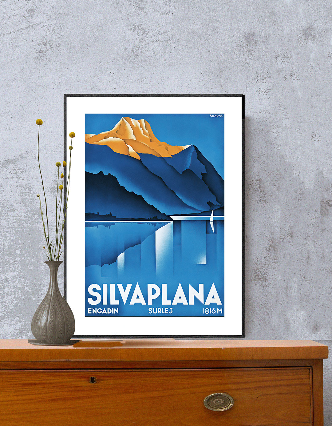 Silvaplana, Suisse Vintage Travel Poster: Swiss Lake Art Print