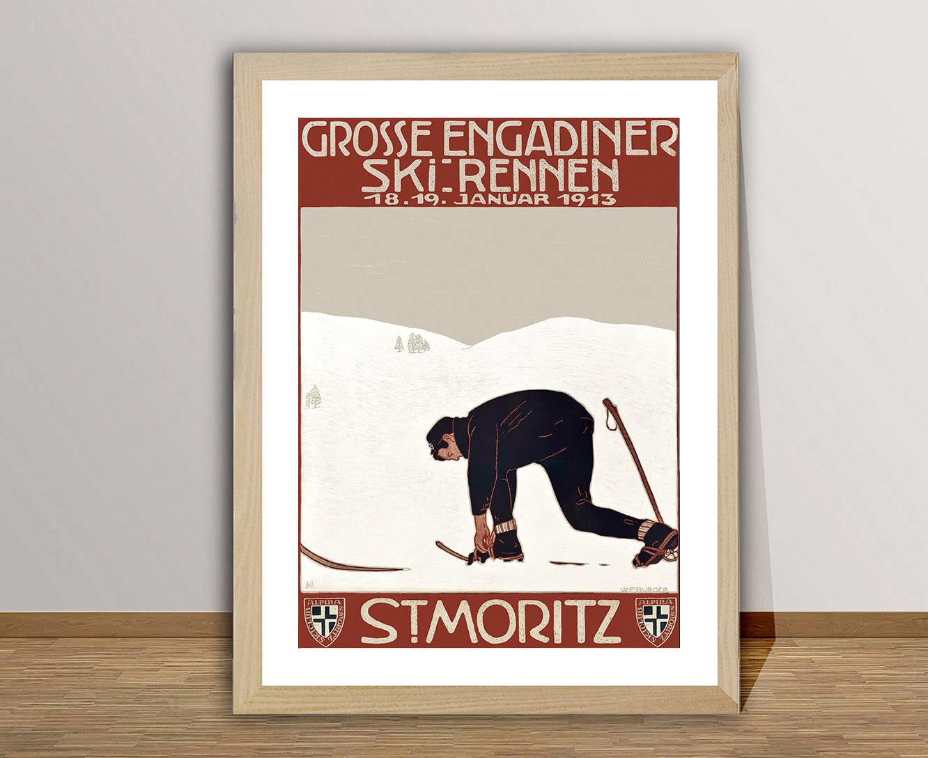 Grosse Engadiner Ski Rennen St. Moritz Vintage Travel Poster - Poster Paper or Canvas Print