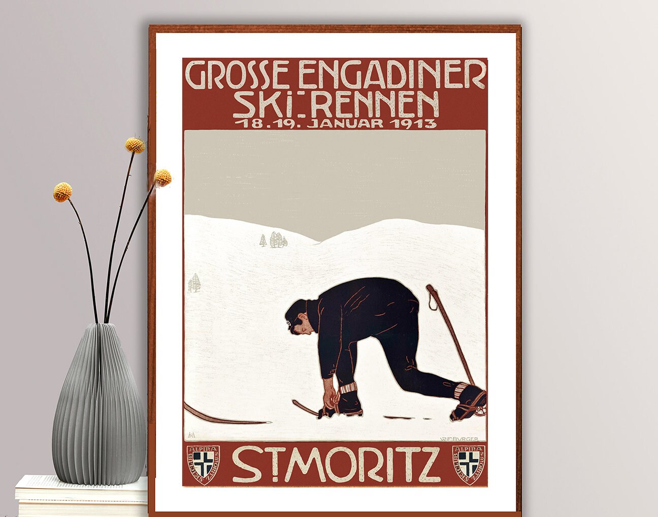 St. Moritz Ski Race Vintage Travel Poster: Swiss Retro Decor