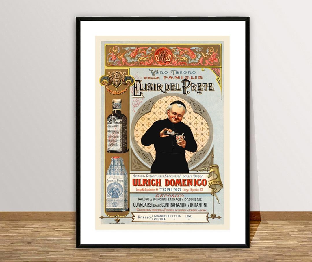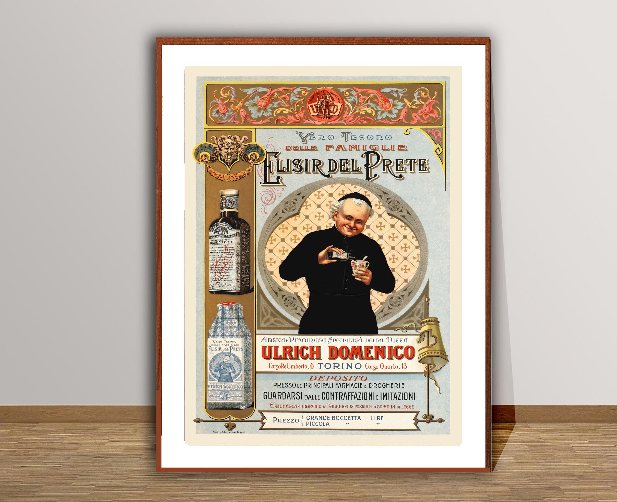 Vintage Elisir Del Prete, Liquor Advertisement Art Print - Reproduction of a Vintage Artwork, Decorative Purposes Wall Decor - Poster Paper or Canvas Print / Gift Idea / Wall Decor