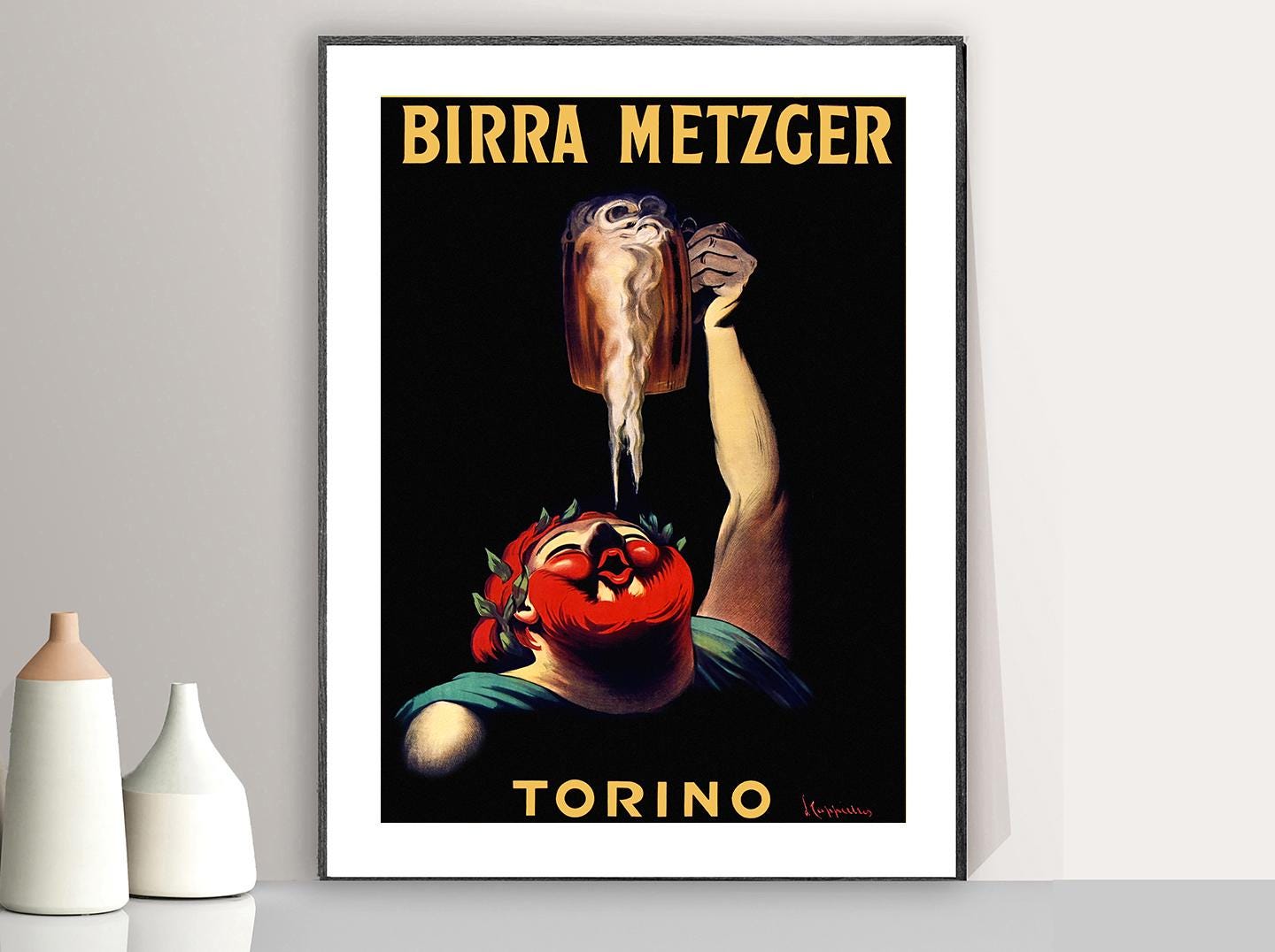 Vintage Birra Metzger Advertisement Art Print - Reproduction of a Vintage Artwork, Decorative Purposes Wall Decor - Poster Paper or Canvas Giclee Print