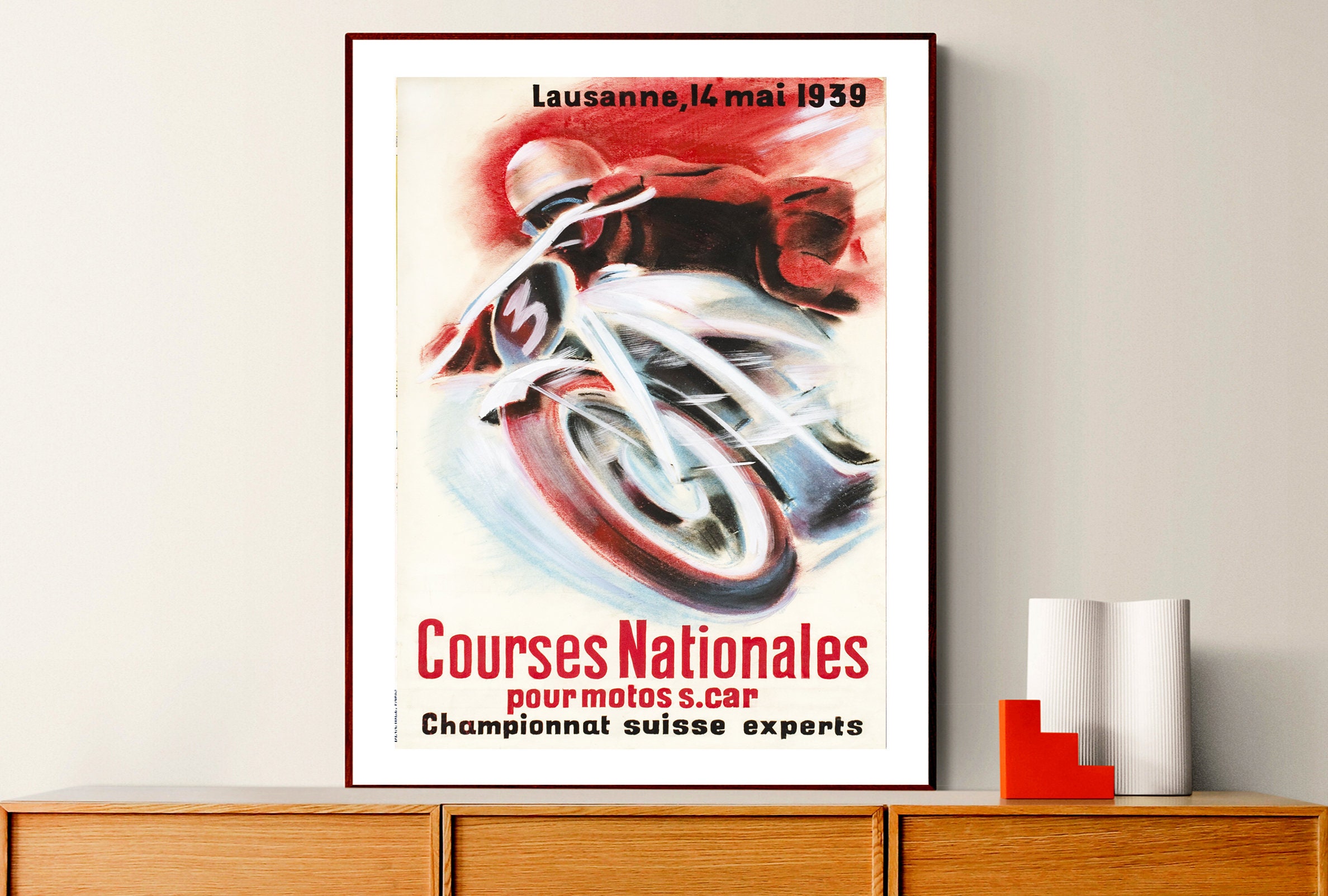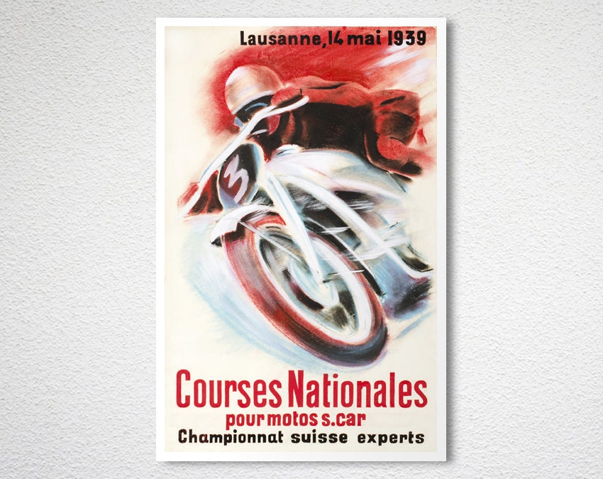 Courses Nationales, Championnat Suisse Experts Vintage Motorcycle Poster - Poster Paper or Canvas Print / Wall Decor