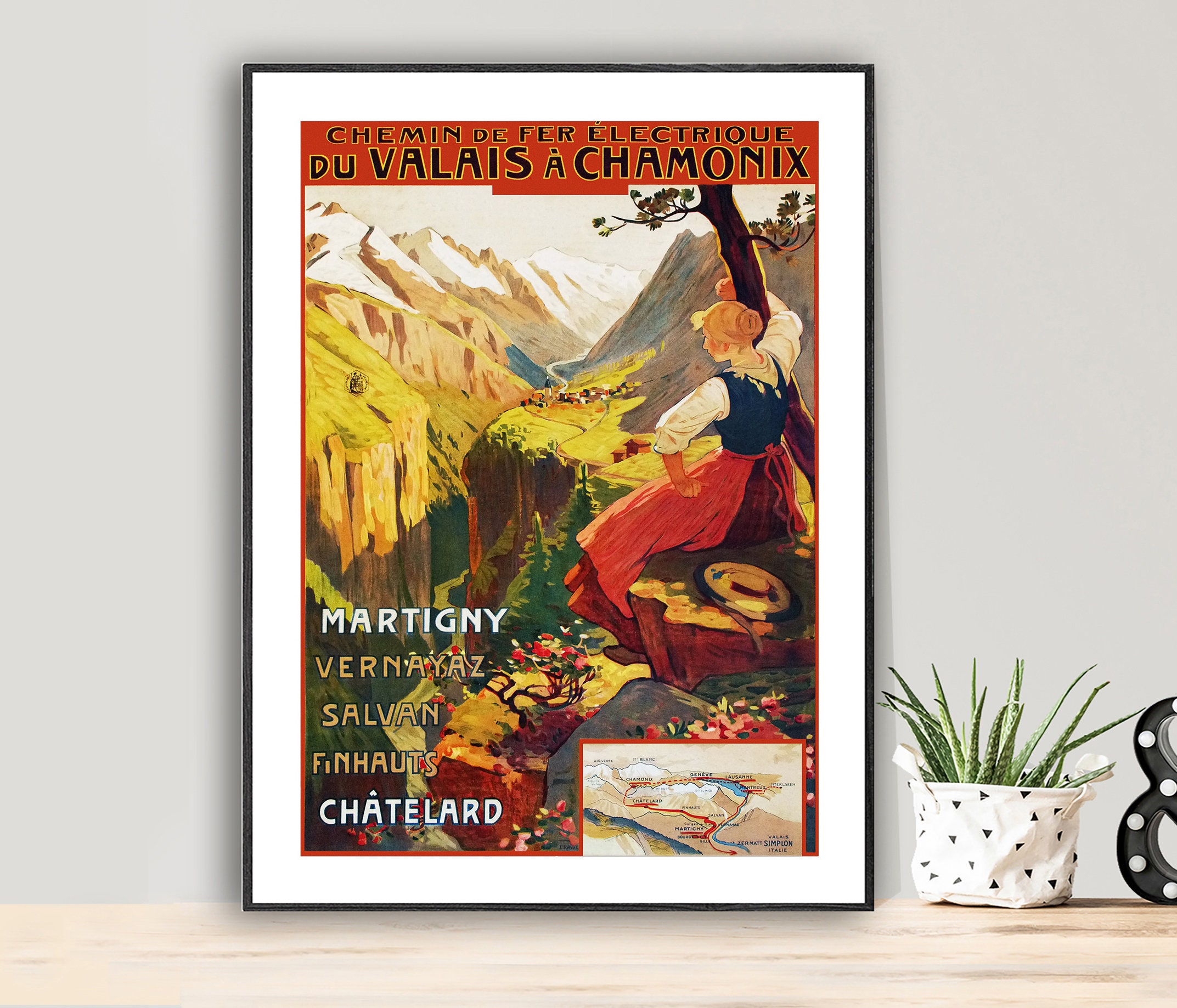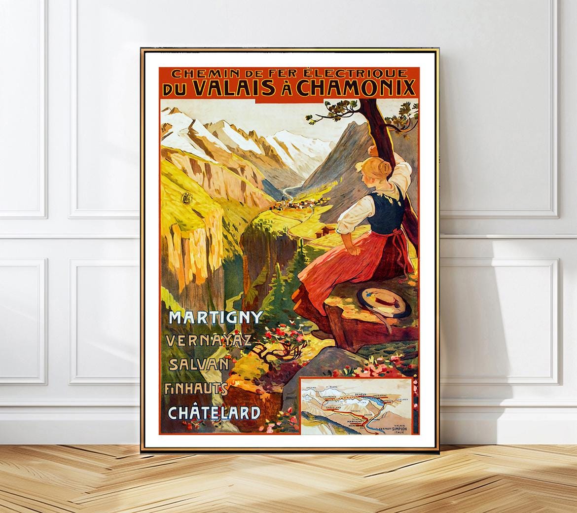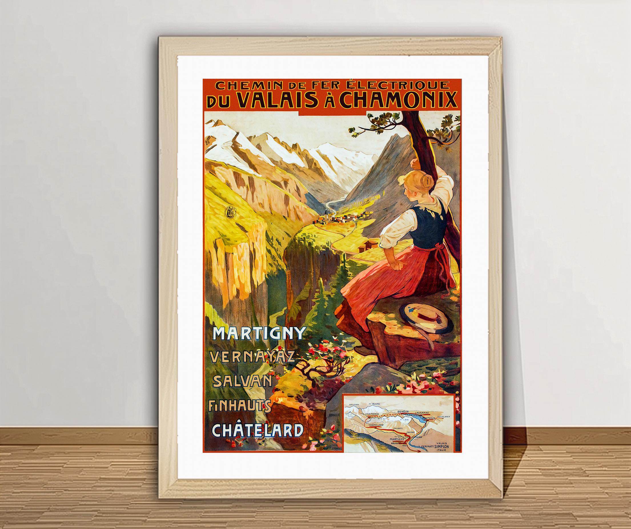 Chemin de Fer Electrique du Valais a Chamonix, (Electric Railway from Valais to Chamonix) Vintage Travel Poster - Poster Paper or Canvas Print