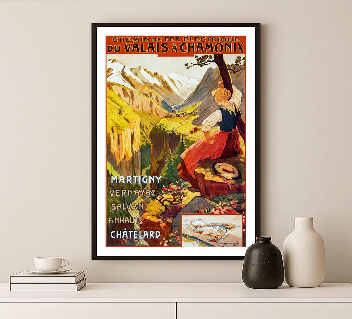 Vintage Train Travel Poster: Valais to Chamonix Art Print