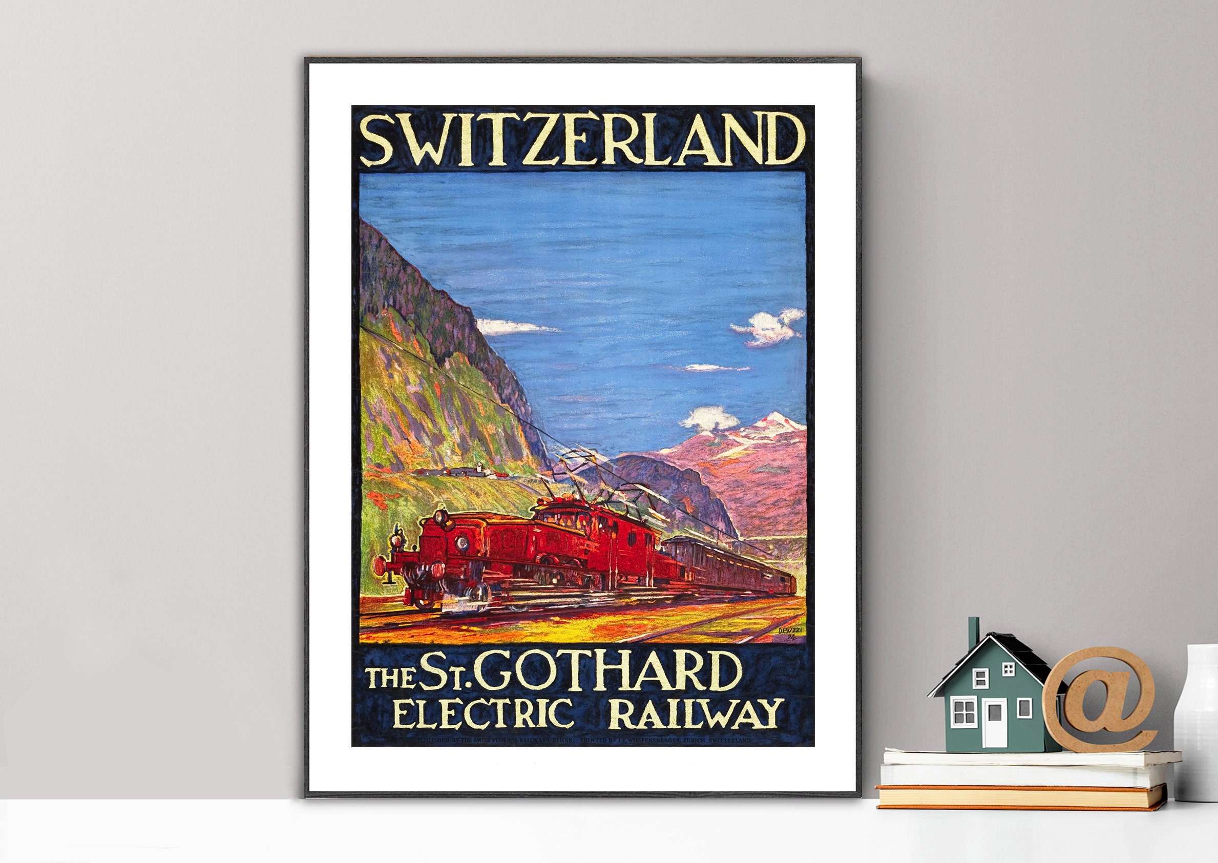 Switzerland St. Gothard Electric Railway Vintage Travel Poster - Poster Paper or Canvas Print
