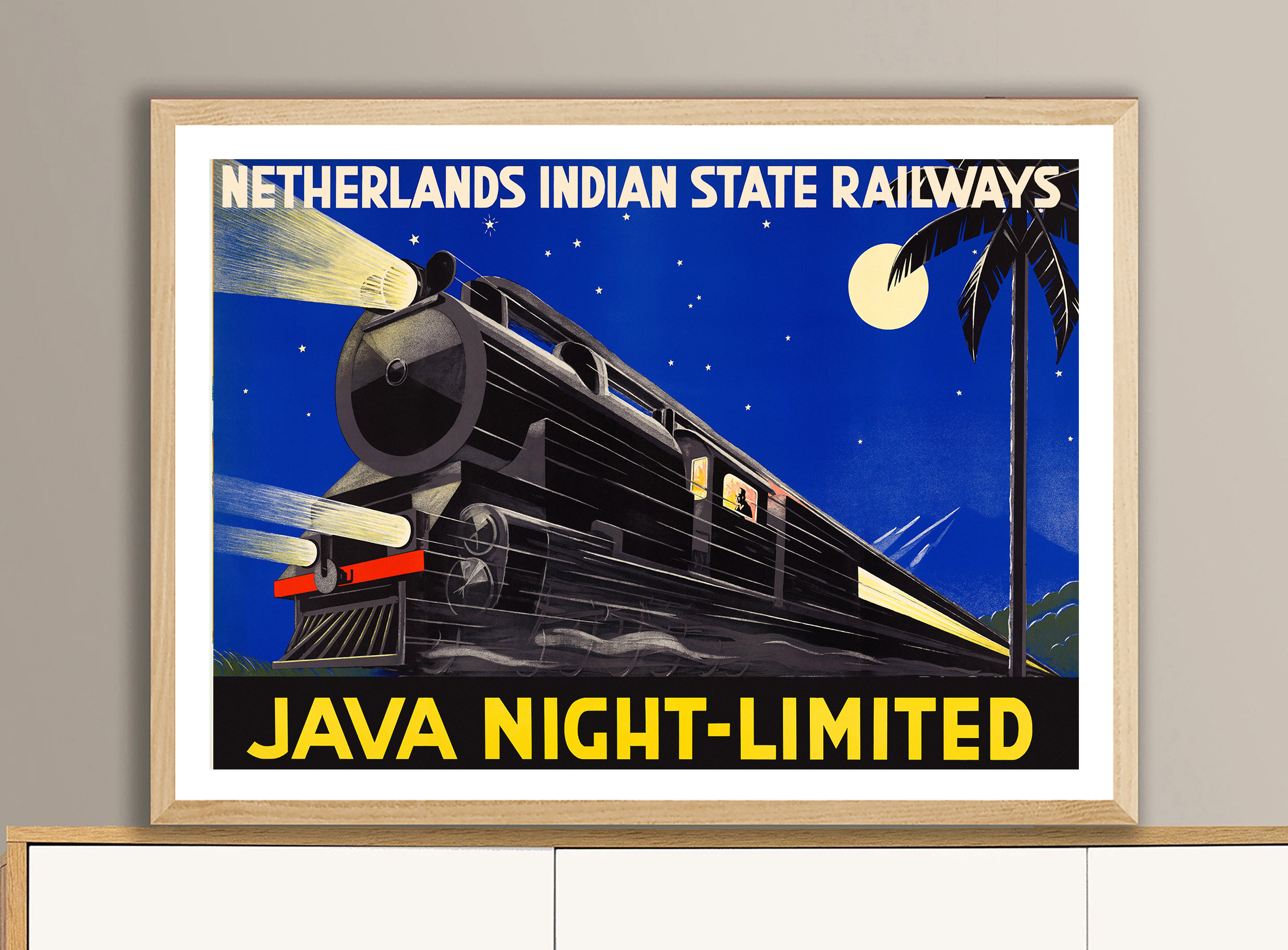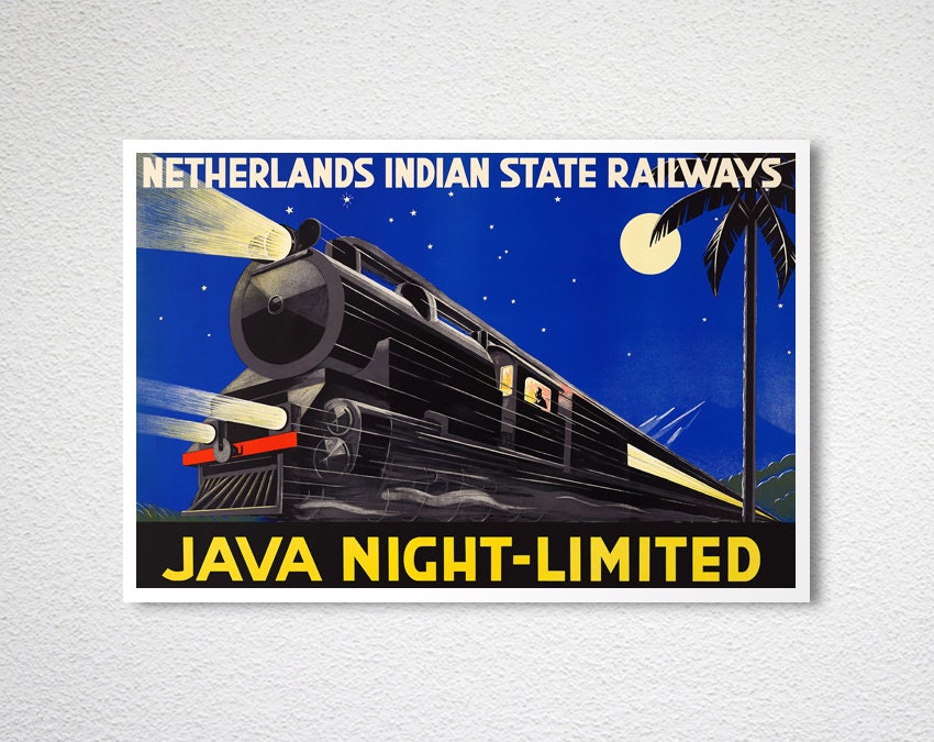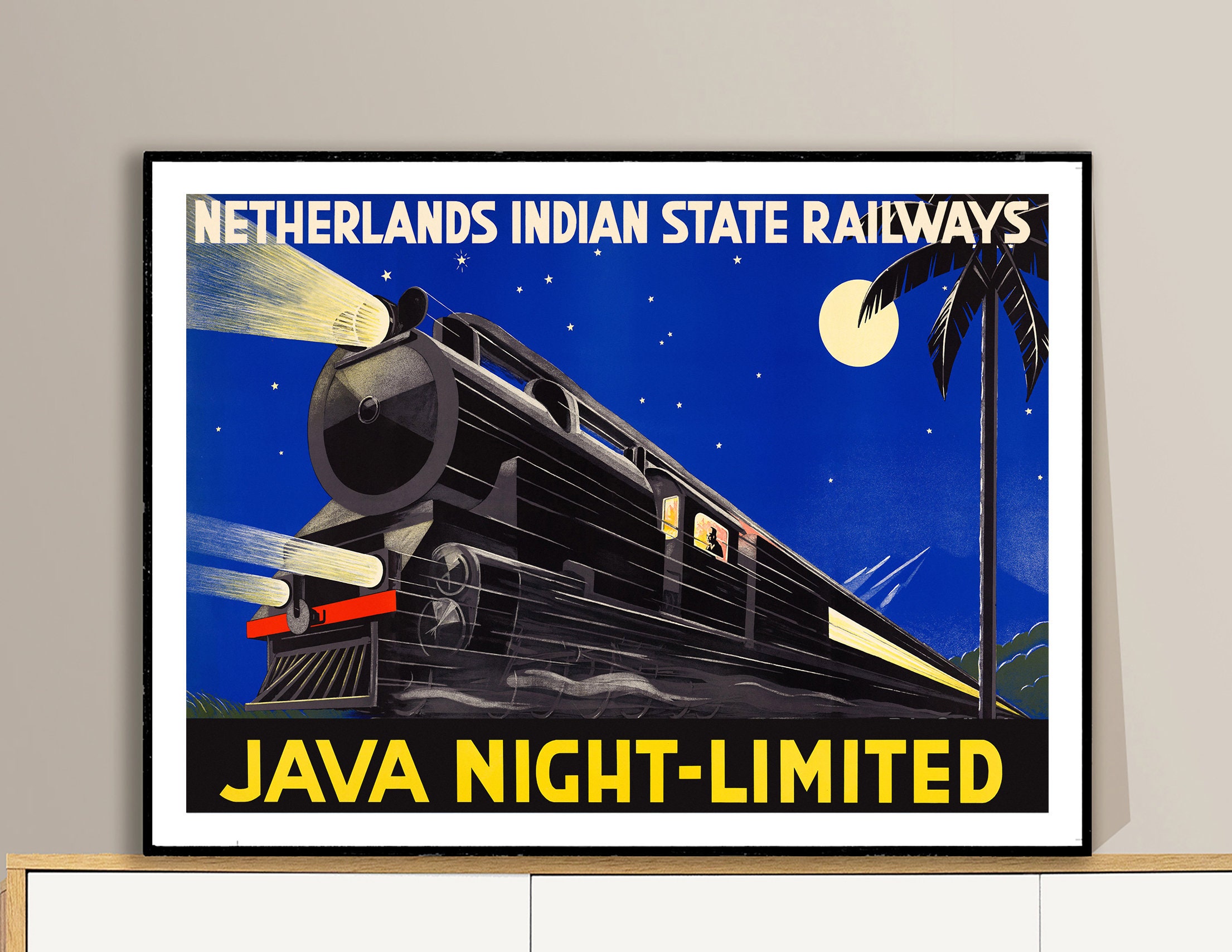 Netherlands Indian State Railways, Java Night Limited Vintage Travel Poster - Poster Paper or Canvas Print / Gift Idea